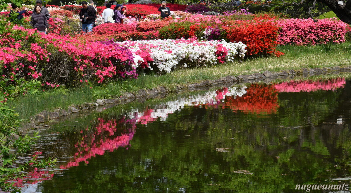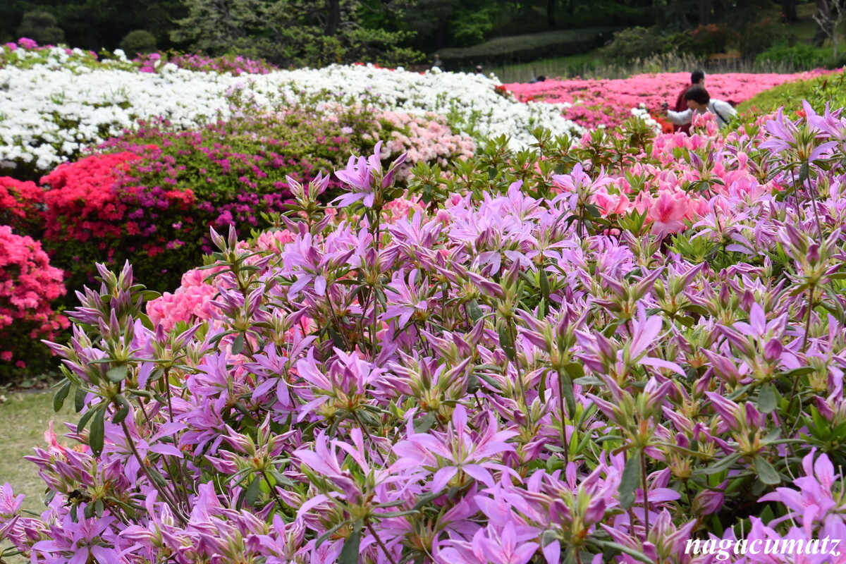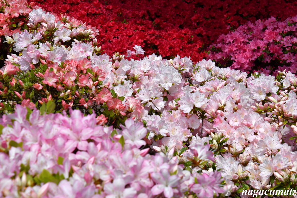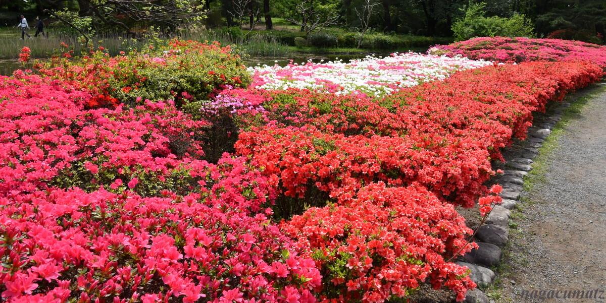 7,800㎡に、クルメツツジ、ヒラドツツジ、サツキツツジなど約270種類、12,000株が植栽されている。