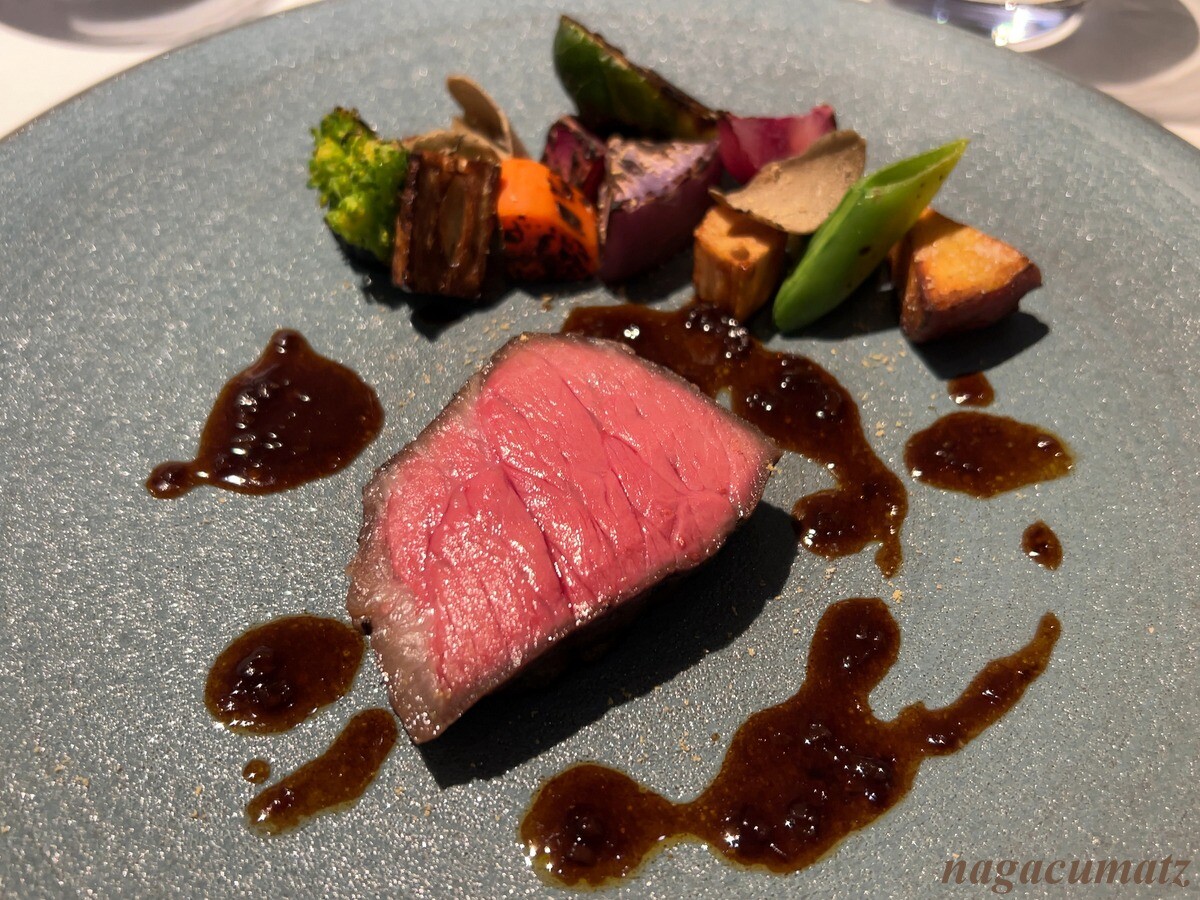 池田牛イチボは塩麹が使われており、赤ワインソース。