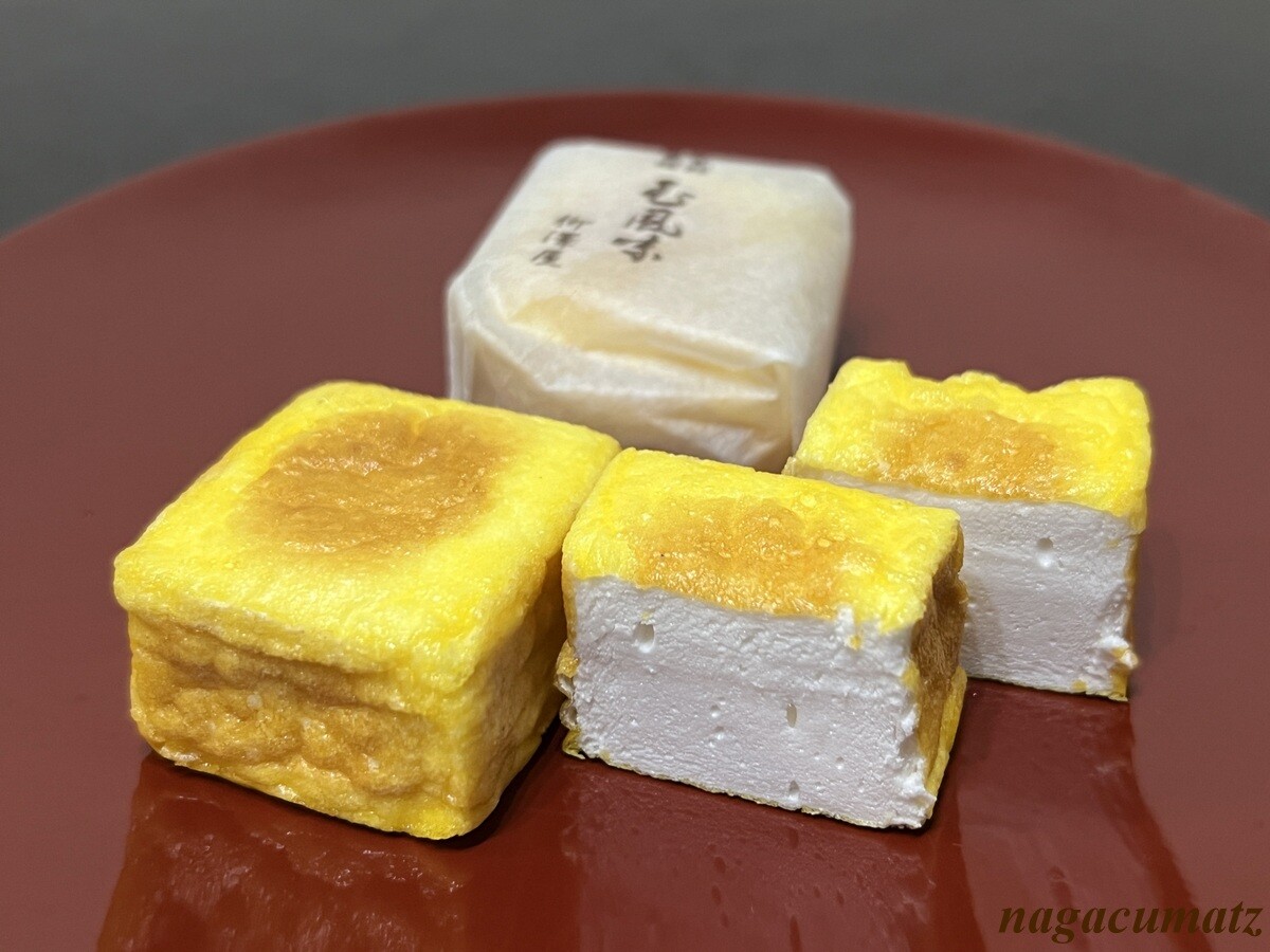 2024年07月04日 【富山】柳澤屋 <甘味> (5月’24) 昨秋にも買って美味しかったので、玉風味を再び。10個入り1400円。(前回の様子は こちら)材料は寒天と卵と砂糖のみで、いたってシンプルなのだが、とても柔らかい。富山市明輪町1-220 きときと市場とやマルシェ とやま銘菓076-471-8125 にほんブログ村 「〇国内(関東以外)グルメ」カテゴリの最新記事 < 前の記事次の記事 > コメント コメント一覧 (2) 1. イワノブッチ 2024年07月04日 07:16 長崎県の平戸で作られている カスドース という菓子に似てますねぇ 卵と砂糖を使っていて コンパクトだけど お値段が・・・ 昔は お殿様しか口に出来なかったそうです (^_^;) 0 な~が nagacumatz がしました 2. な~が 2024年07月04日 10:15 >>1 イワノブッチさん、 確かに、見た目が似ているかと思います。 カスドースは相当前ですが、食べたことがあります: https://nagacumatz.livedoor.blog/archives/350202.html カスドースはカステラ生地で甘かったように記憶しておりますが、 こちらの中身は卵白で、硬めのマシュマロみたいな感じでした。 確かに、お殿様のお菓子ですよね~ 0 な~が nagacumatz がしました コメントフォーム 名前 コメント 記事の評価 リセット リセット 顔 星 情報を記憶 コメントを投稿する
