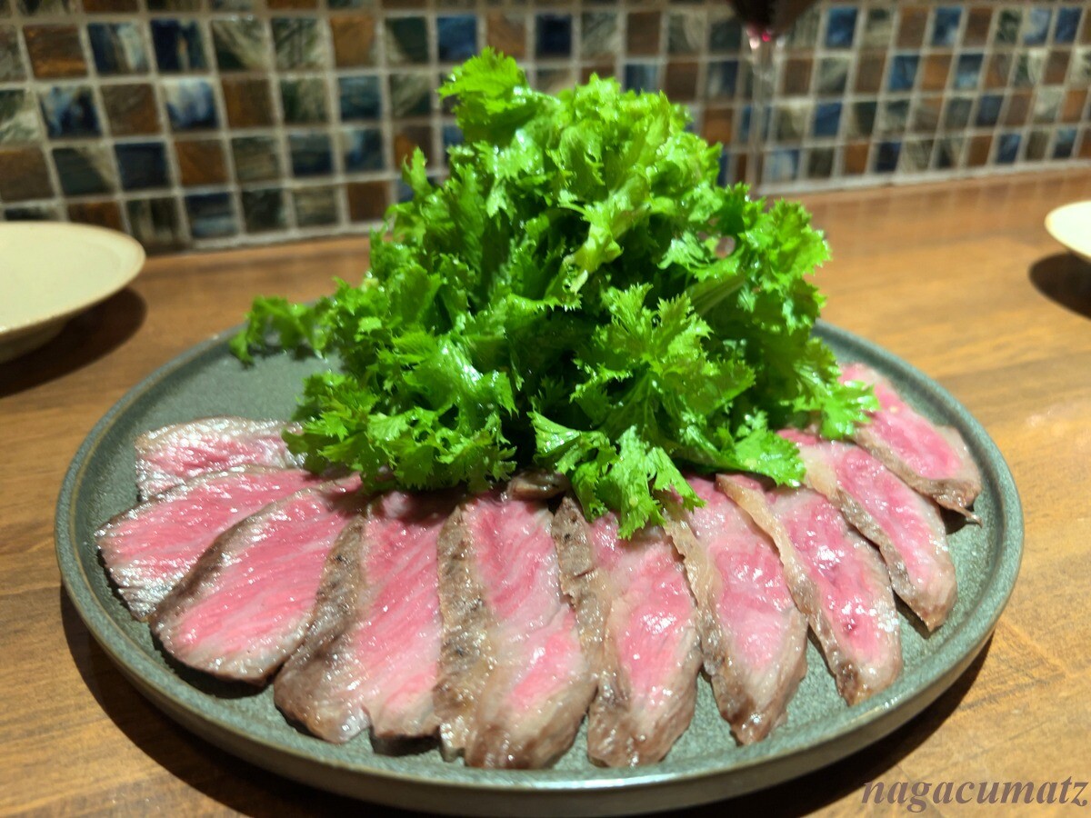 大人のわさビーフ 2950円 A5クラスの和牛でわさび菜を巻いていただく。