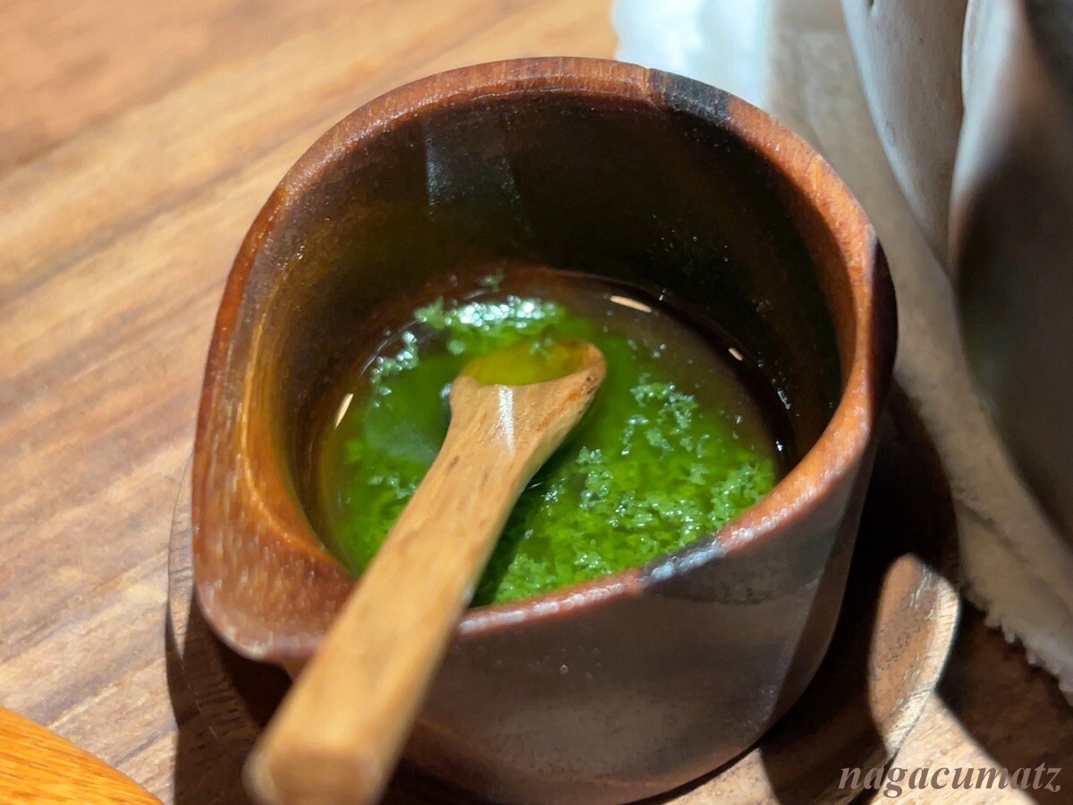 オープンキッチンになっている厨房では2人、裏方に1人、ホールには3人のスタッフ。いずれもお若い方達ばかりだが、とても素早くきっちりオペレーションが出来ていて、飲み物のお替りを聞くタイミングや、注文した内容の順番を把握していてご飯前に追加がないかの確認など、気持ちが良い。
