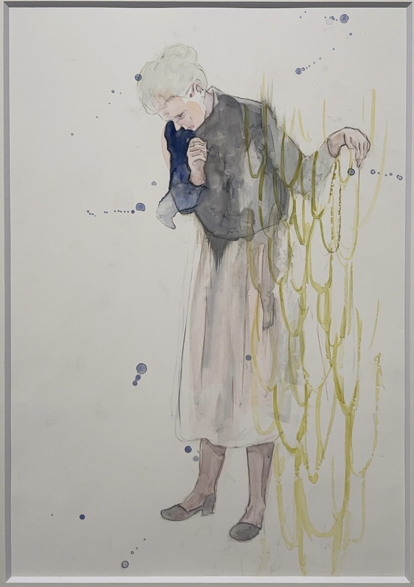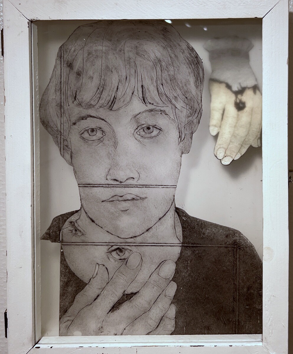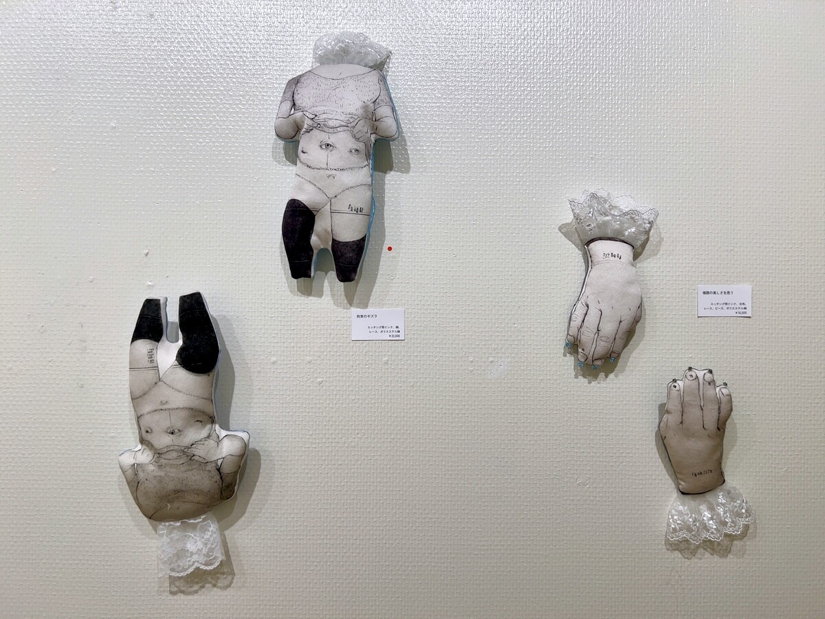 油彩、ドローイング、版画、透け感のある布に木炭や絵の具で描くなどの立体作品を制作されている。
