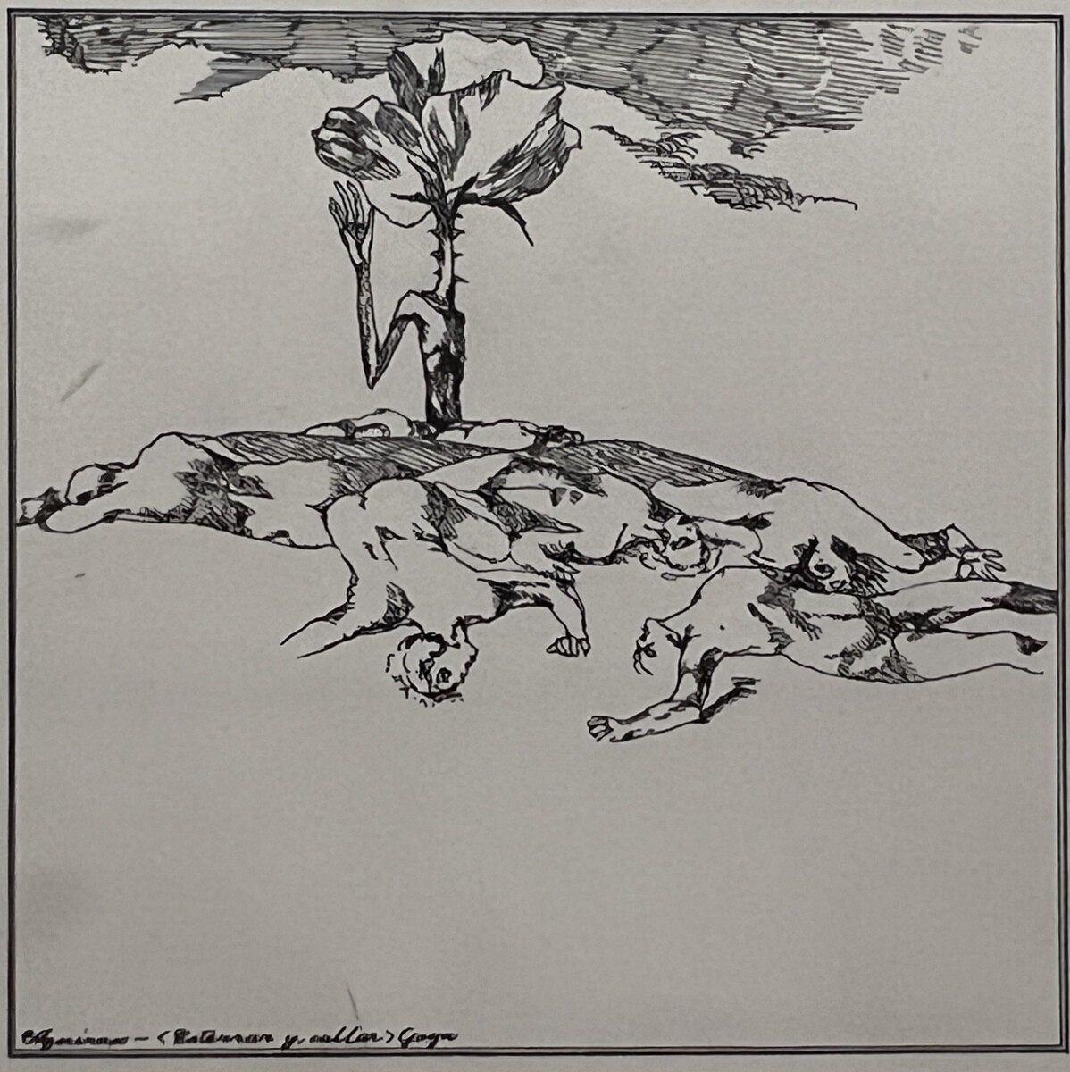 舞台は戦時中の日本で、村の少年と、都会から疎開してきた少女の物語。少女は都会に戻るが都会は空襲にあってしまう。宇野氏はあらすじだけを聞いて、この絵を作成。戦争中のリアリズムは描きたくなかったので、少女はとても長い髪、少年もバリカンで短いはずだがそうではない髪型に。