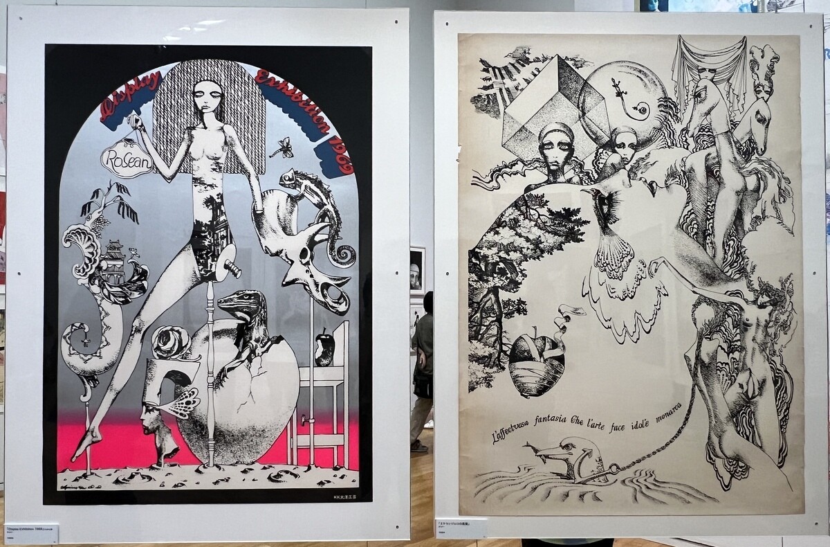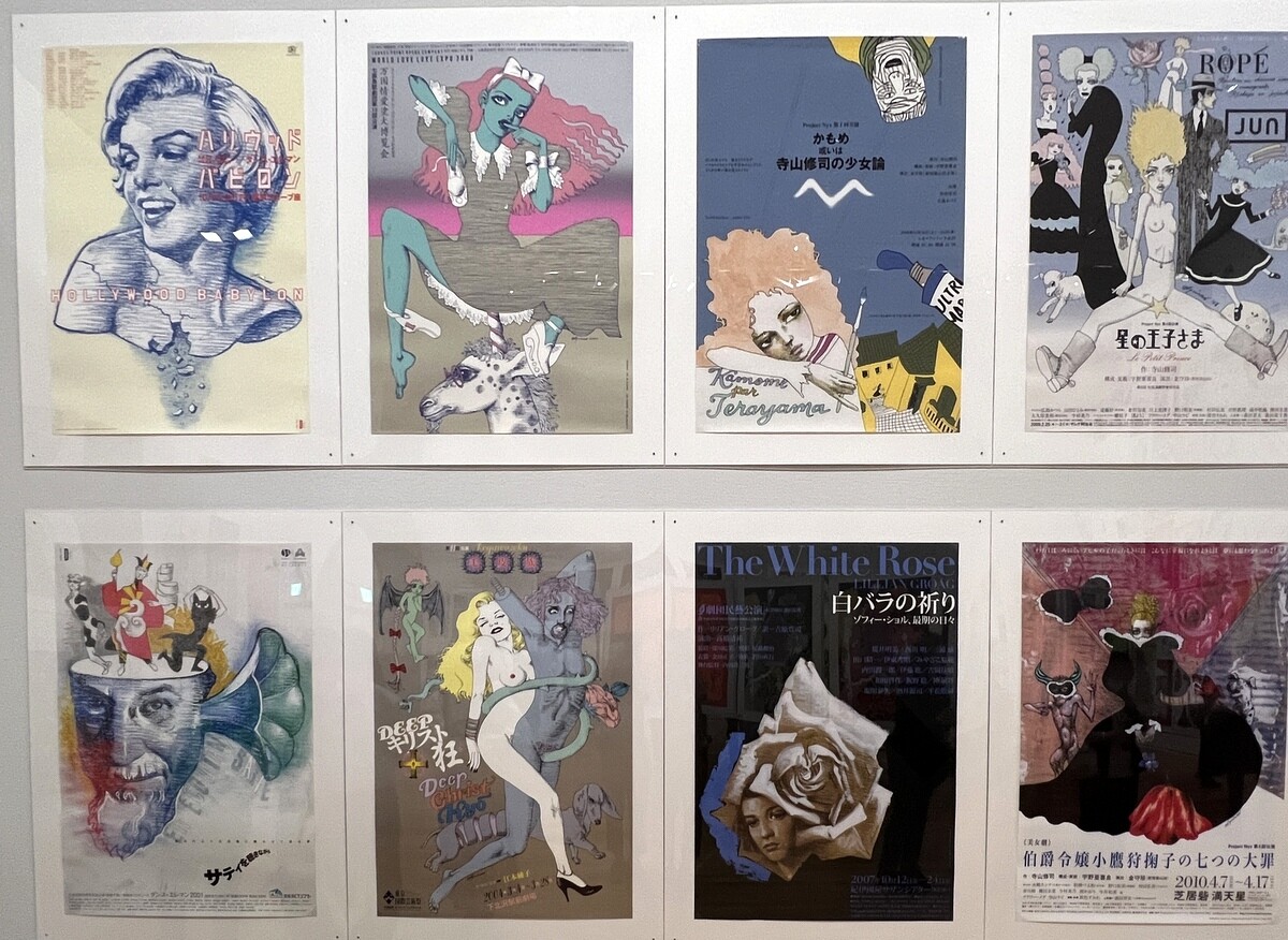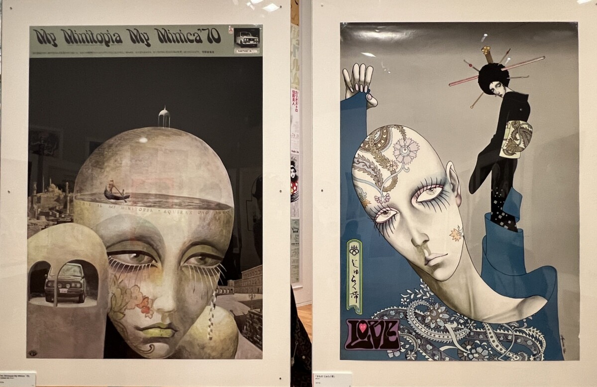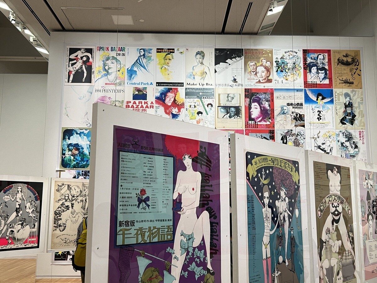 1950年代~現在に至るまでの180点のポスターが並ぶエリアは圧巻。宇野氏いわく、日本宣伝美術界で認めてもらうことが入口だったと、そしてポスターは、絵画的な要素とグラフィックデザインの要素がうまく融合しているので、絵を描きたい思いとデザインをしたいと思いがうまく表現できている場だと。