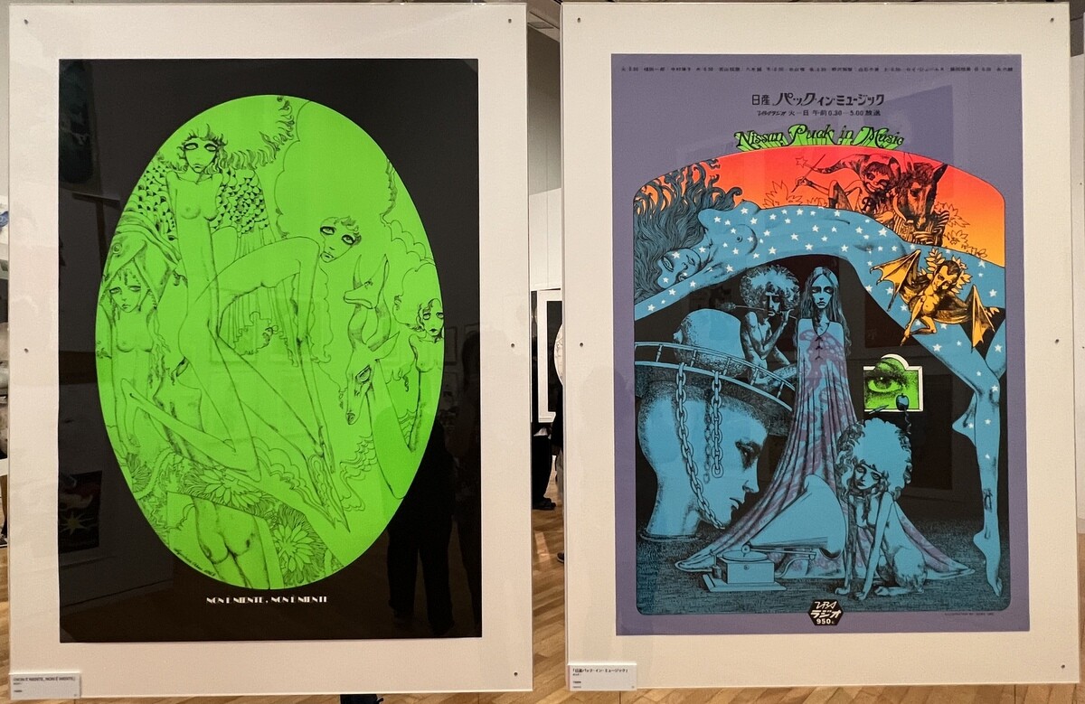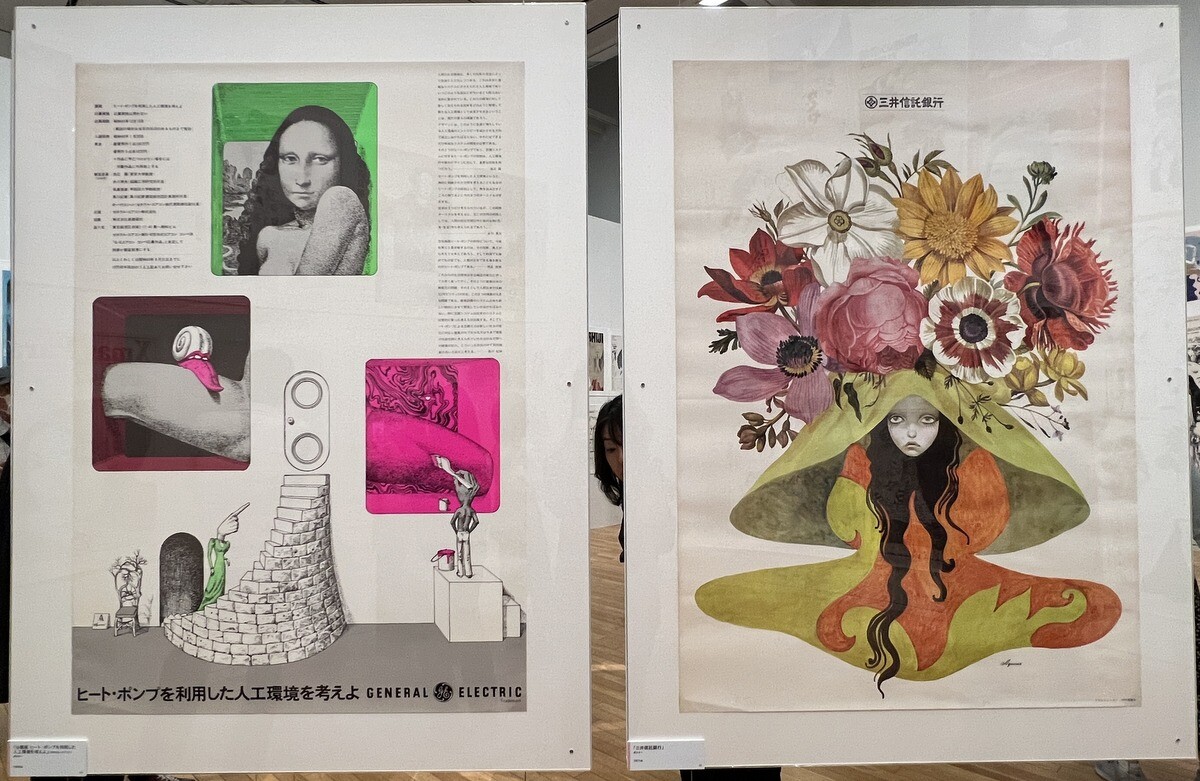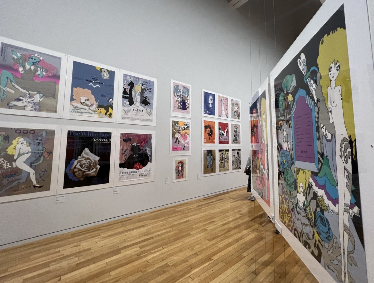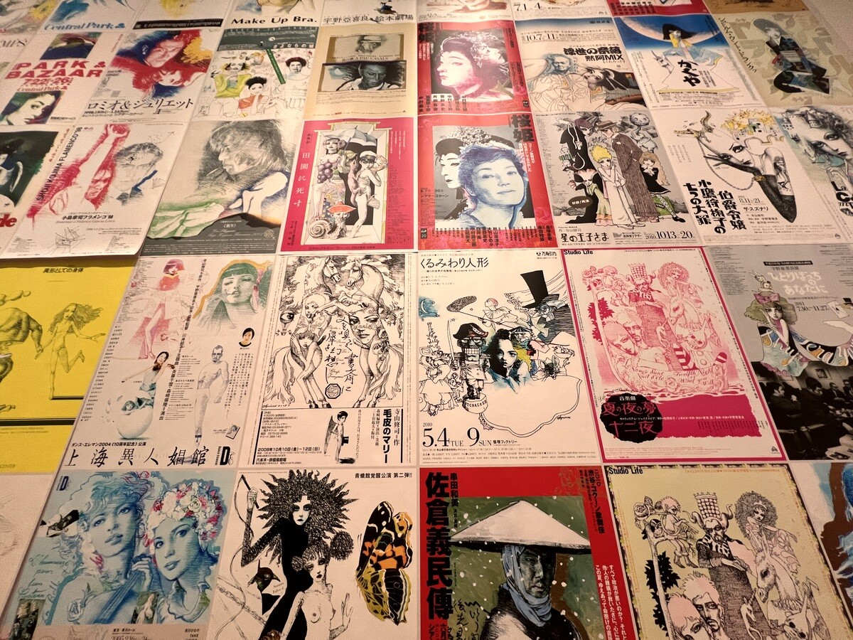 1950年代~現在に至るまでの180点のポスターが並ぶエリアは圧巻。宇野氏いわく、日本宣伝美術界で認めてもらうことが入口だったと、そしてポスターは、絵画的な要素とグラフィックデザインの要素がうまく融合しているので、絵を描きたい思いとデザインをしたいと思いがうまく表現できている場だと。