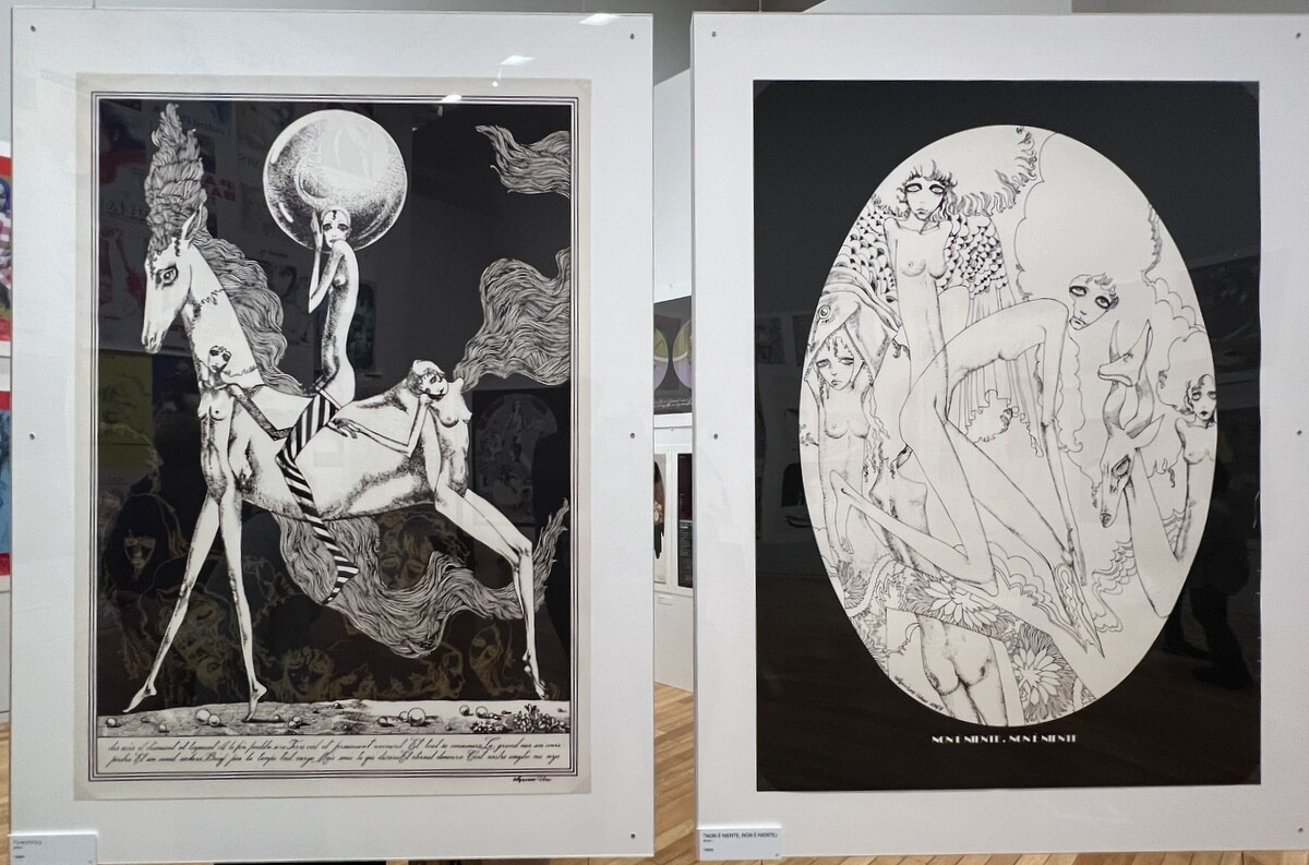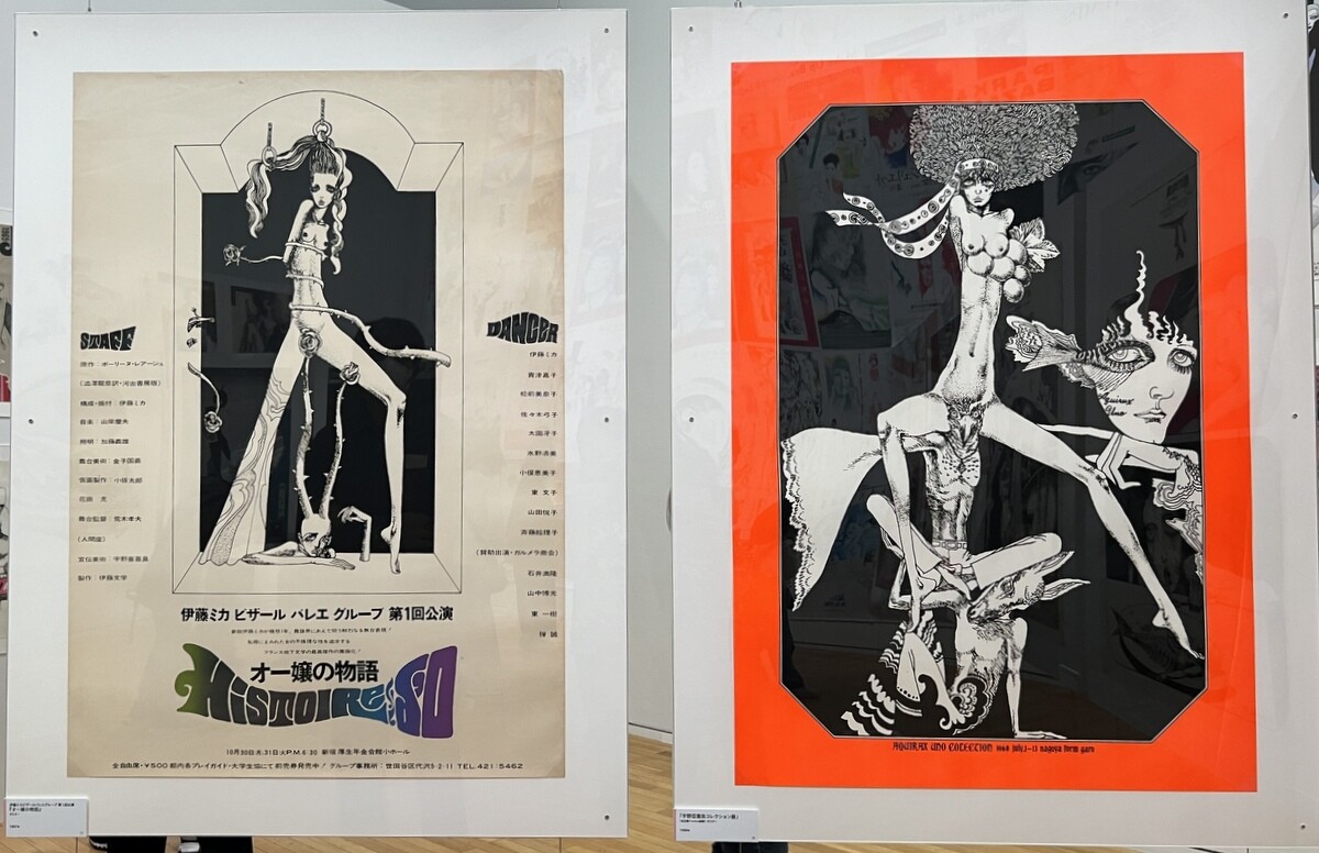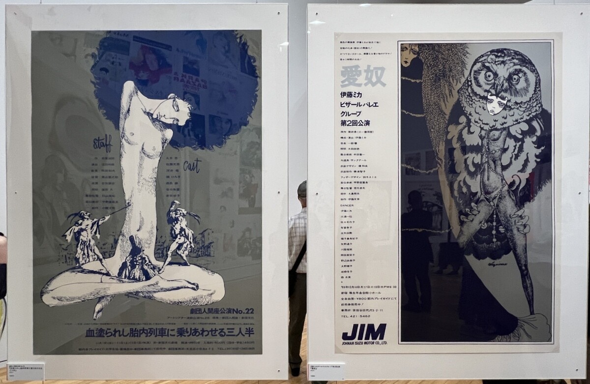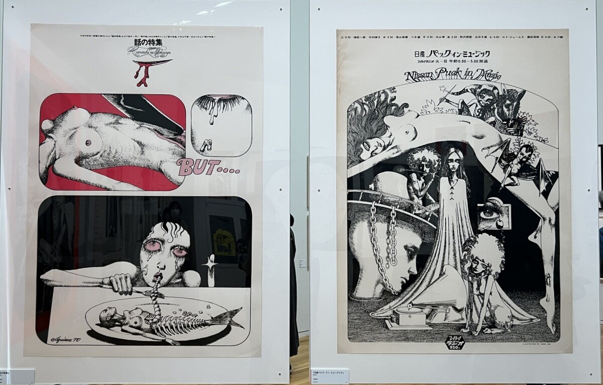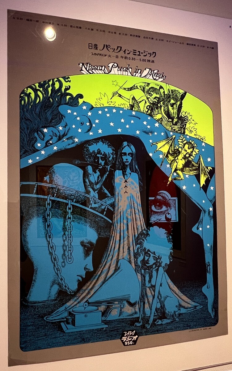 1950年代~現在に至るまでの180点のポスターが並ぶエリアは圧巻。宇野氏いわく、日本宣伝美術界で認めてもらうことが入口だったと、そしてポスターは、絵画的な要素とグラフィックデザインの要素がうまく融合しているので、絵を描きたい思いとデザインをしたいと思いがうまく表現できている場だと。