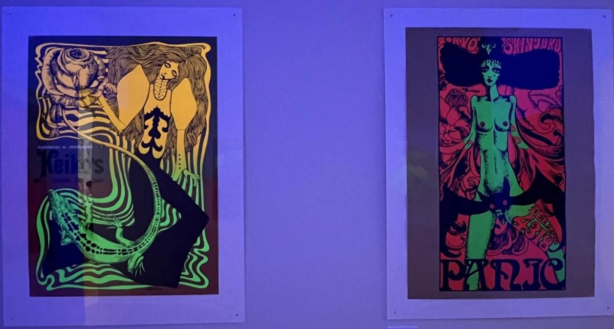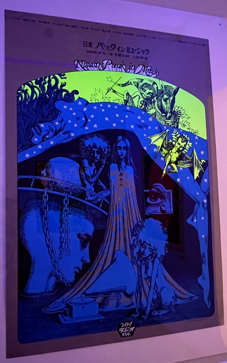 蛍光塗料が施されたポスターをブラックライトの光で鑑賞できるコーナーも。