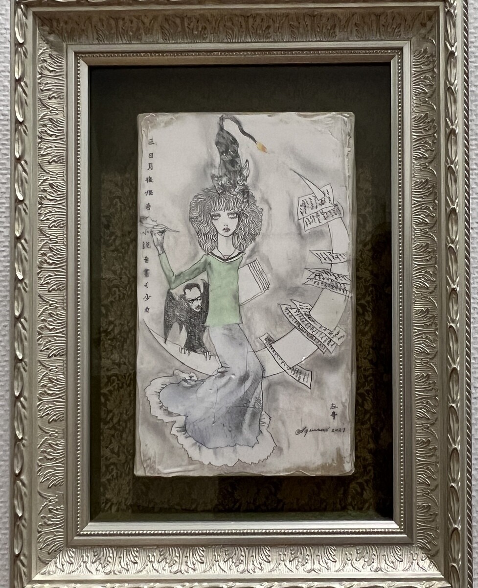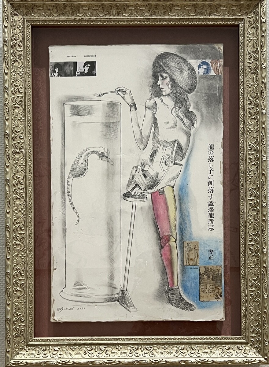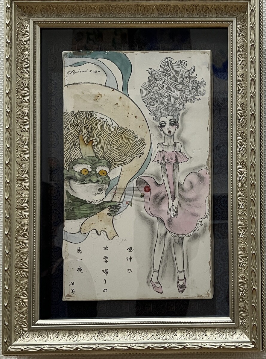 宇野は俳句に親しみ、「左亭」の俳号を持っており、松尾芭蕉や寺山修司氏らが詠んだ句をテーマとした新作を描き続けている。