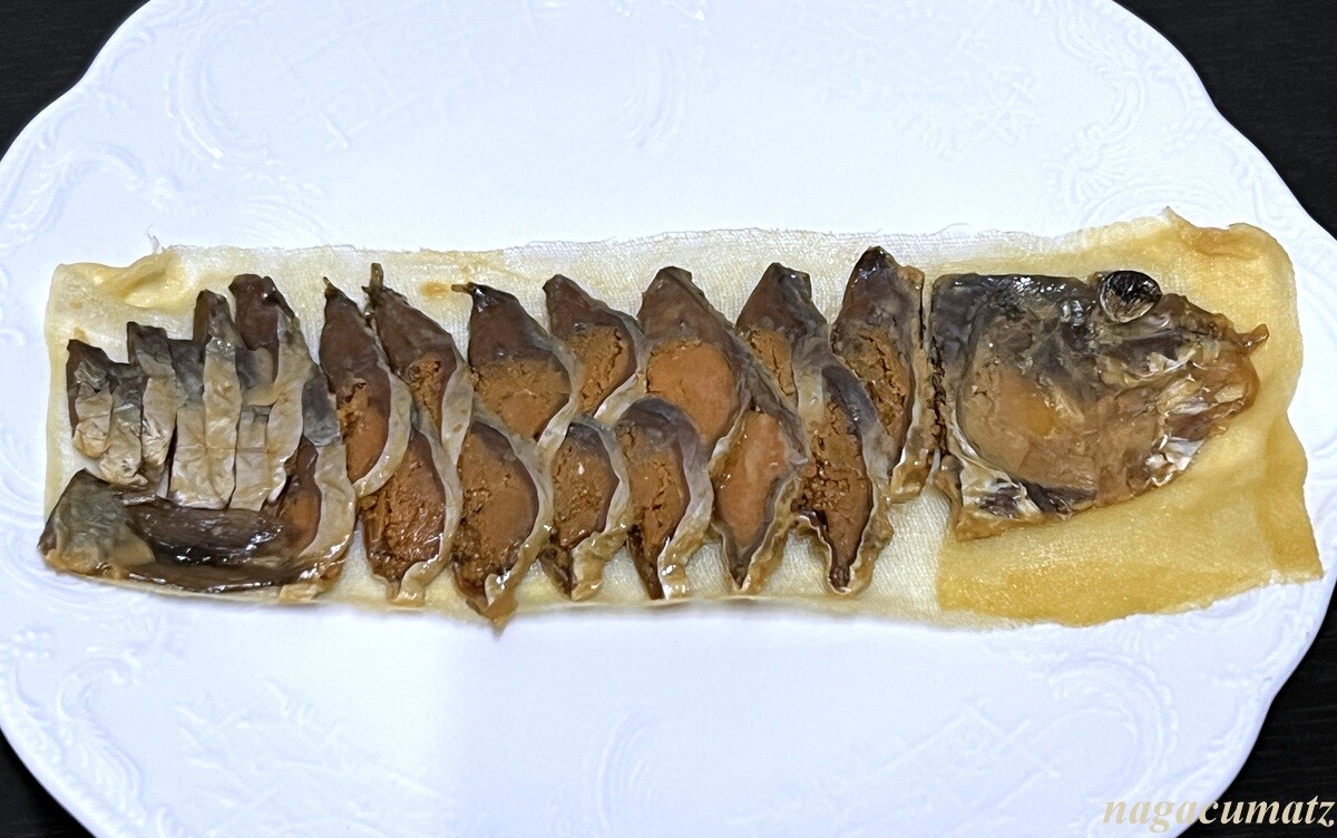 2024年08月06日 魚治 <鮒寿司専門店> (6月'24) 定期的に東京のデパ地下で販売されているので、買わせてもらっている鮒寿司。今回は甘露漬を。一度お米で漬け込んだ鮒寿司の本漬けの飯を取り除いて再度甘露漬にしたもの。大きさによるが、これで 4320円 美味しいが、本漬けよりもマイルドで香りが奈良漬けのよう?かな。以前に食べた本漬けの様子は: (銀座三越 期間限定)滋賀県高島市マキノ町海津2304 0740-28-1011 www.uoji.co.jp にほんブログ村にほんブログ村 「〇グルメ 関東」カテゴリの最新記事 < 前の記事次の記事 > コメント コメントフォーム 名前 コメント 記事の評価 リセット リセット 顔 星 情報を記憶 コメントを投稿する