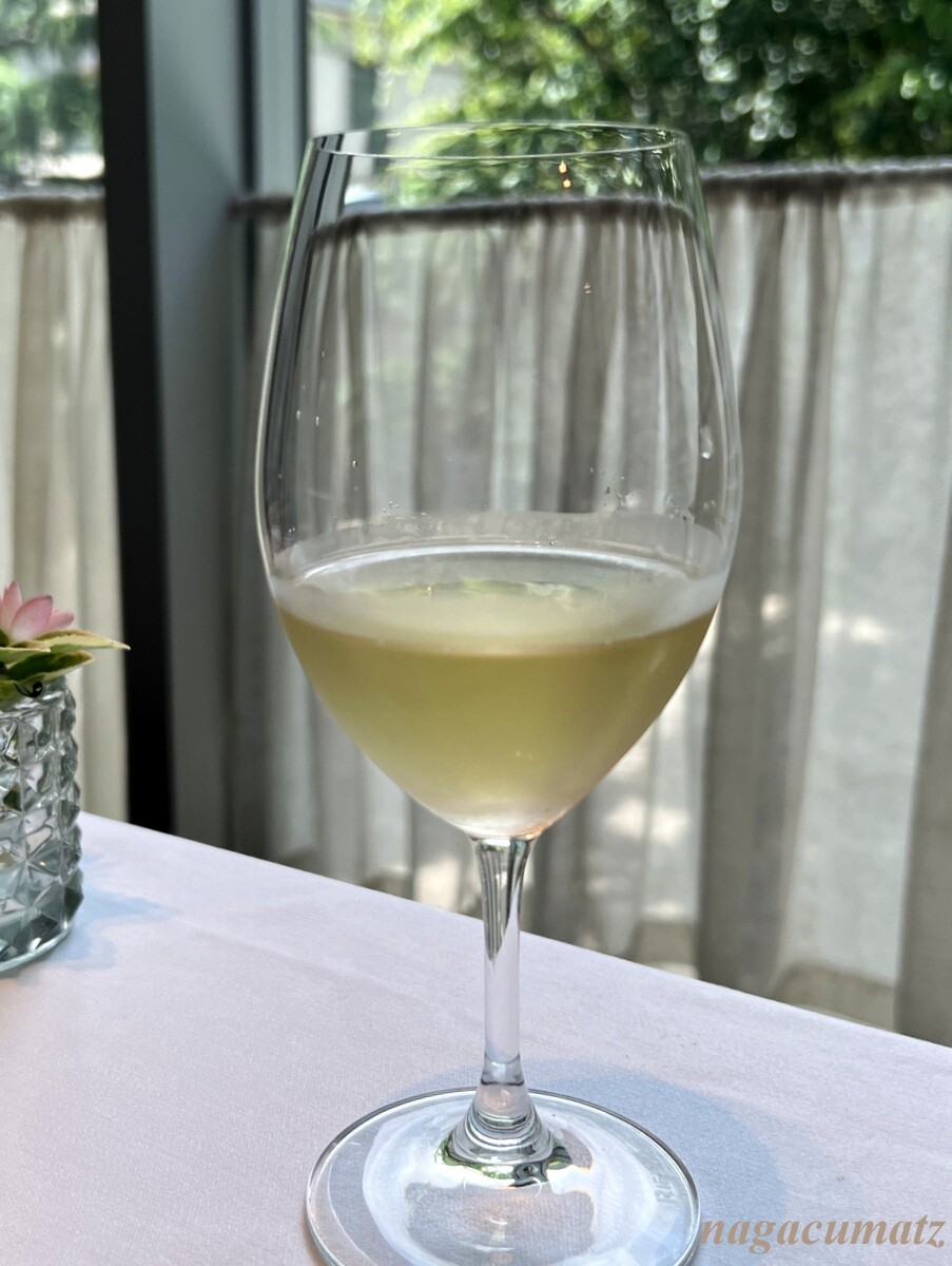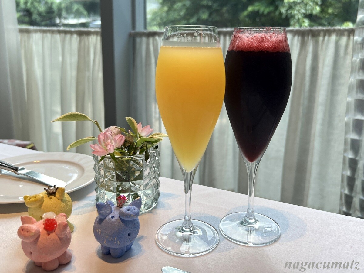 シャンパンをパイナップルとカシスで割ってもらう。各1900円。