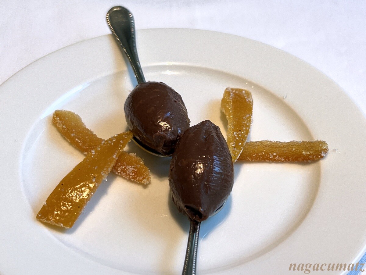 プチフールに佐賀の河内晩柑、山口の甘夏のピールの砂糖漬け、ブルーベリーやブラックベリーが入ったチョコレート