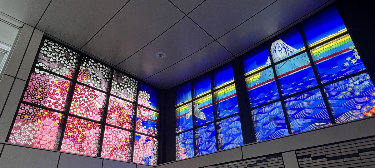 2024年07月01日 パブリックアート 平松礼二 @ ゆりかもめ新橋駅 平松礼二氏「四季・東京ベイ」2019「現代の琳派」という意味を込めて琳派モダンとも呼ばれている日本画家の平松氏の原画・監修で製作されたステンドグラス。向かって左が春、正面が夏、右が秋となっていて、夏の海の空には東京都のシンボルとなっている鳥であり、新交通システムの名前の由来でもあるゆりかもめが描かれている。会場:ゆりかもめ新橋駅にほんブログ村にほんブログ村 「アート鑑賞」カテゴリの最新記事 < 前の記事次の記事 > コメント コメント一覧 (2) 1. イワノブッチ 2024年07月01日 14:47 ゆりかもめ新橋に 見事なアート作品があるんですね〜 2019年ということは オリンピック意識して・・・ 夏の富士山って 私には チョコレートムース というイメージです (^_^;) 0 な~が nagacumatz がしました 2. な~が 2024年07月01日 16:23 >>1 イワノブッチさん、 確かに、夏の富士山は雪がない分、おっしゃるようにチョコレート色ですもんね😂 ゆりかもめの新橋駅の駅員さんにこの作品の場所についてお伺いしたら、最初は この作品のことがピンときてなくて、先にご自分でチェックしに行ってから、 ゆりかもめに乗ったわけではない我々を快く構内に入れて下さいました♬ 0 な~が nagacumatz がしました コメントフォーム 名前 コメント 記事の評価 リセット リセット 顔 星 情報を記憶 コメントを投稿する