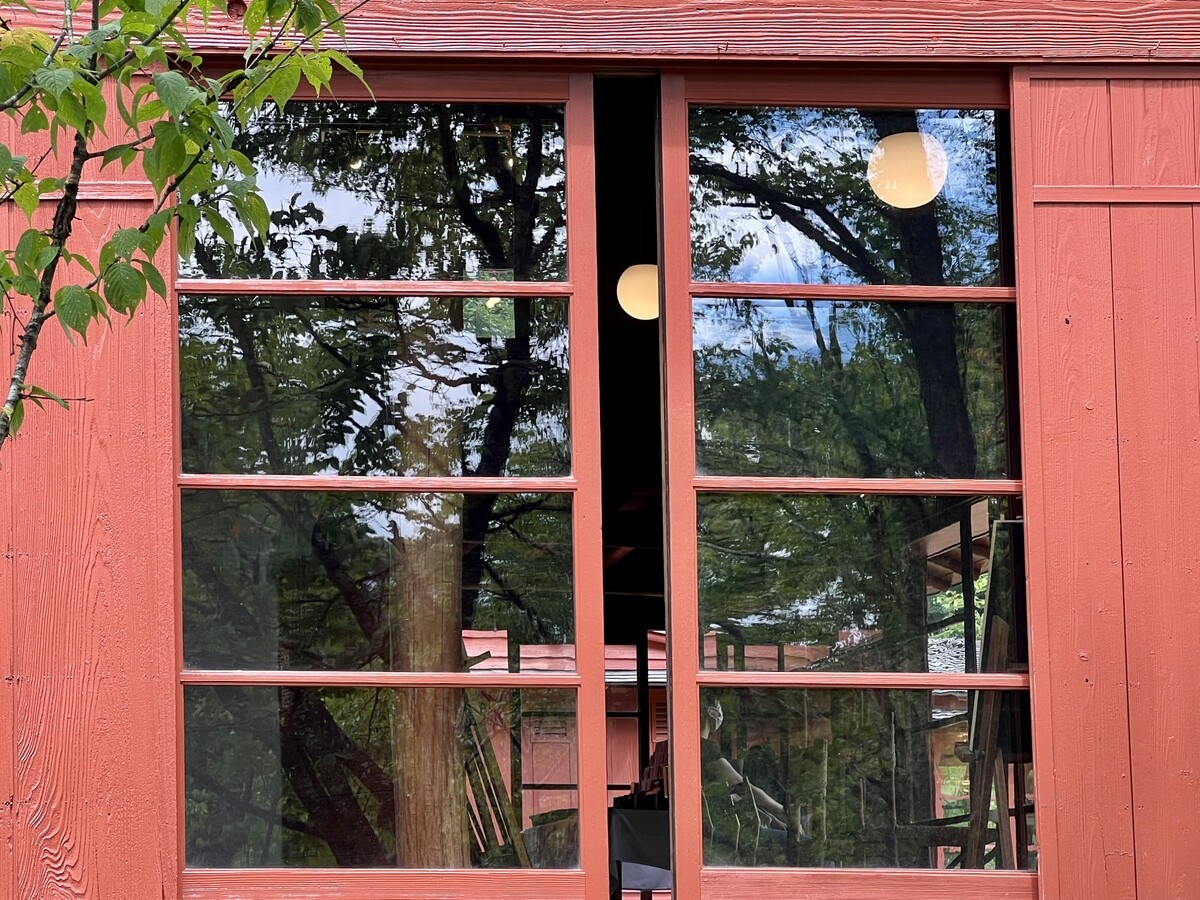地元産の杉を用いた簡素な外壁は、当初、白木だったとか!