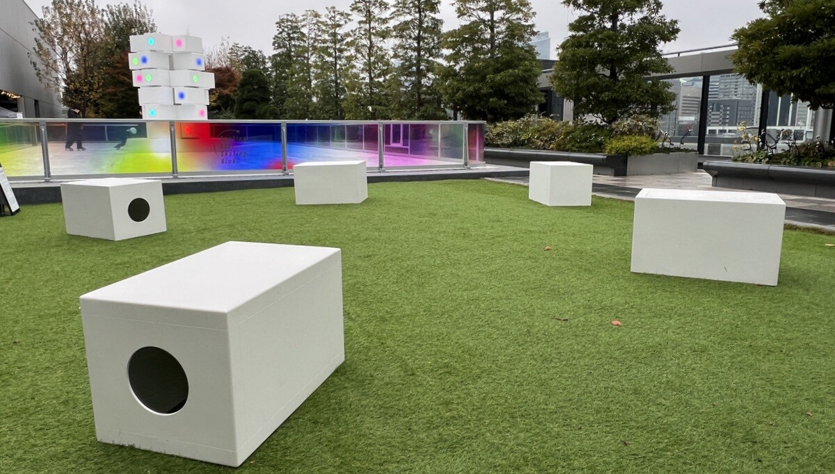 広い芝生と水が流れるエリアがあり、色々なアーティストによるパブリックアートが展示されたり、スケートリンクになることも。