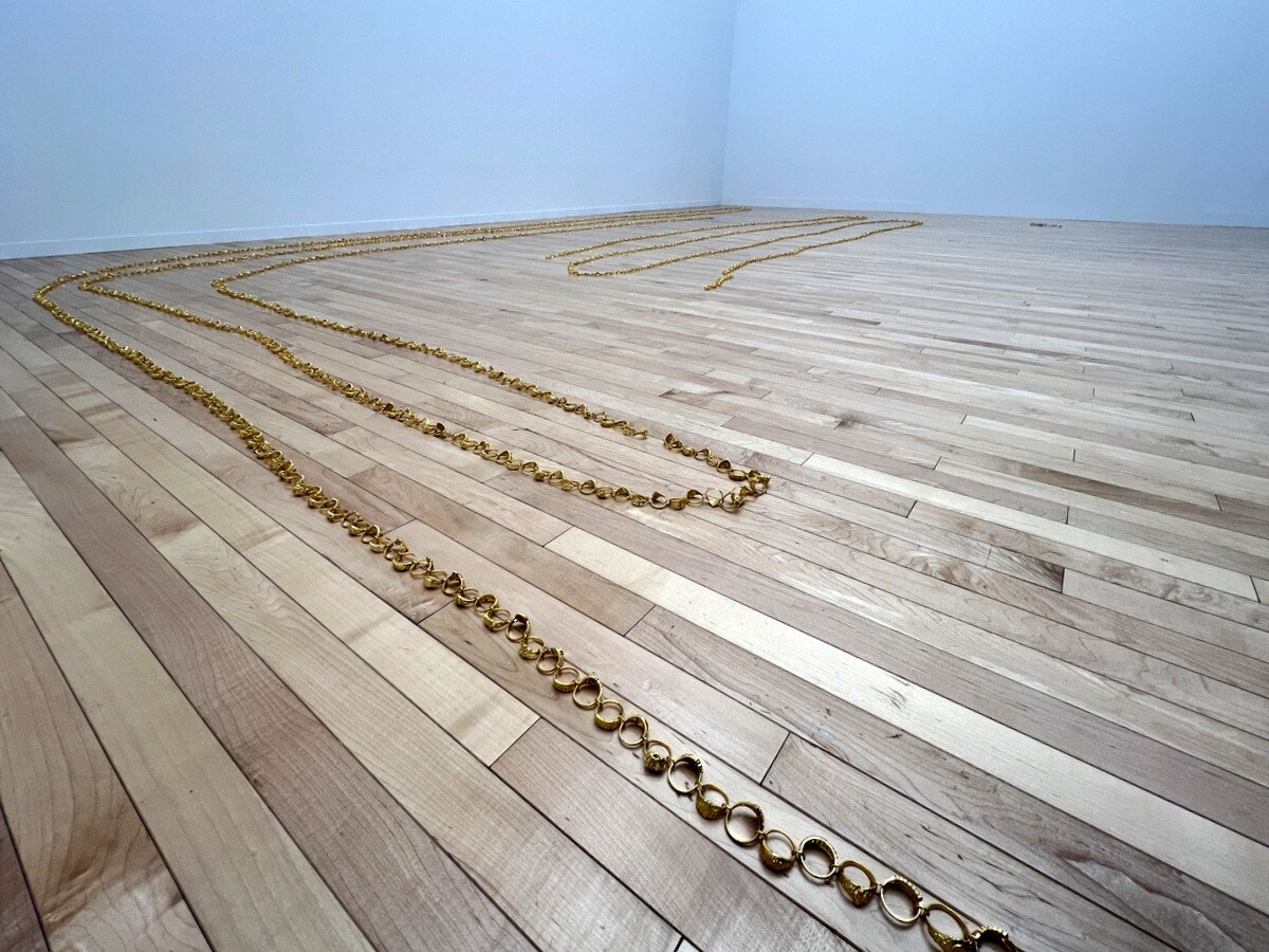 2024年11月02日 コレクション展 野村和弘 @ 東京都現代美術館 (9月’24) 特集展示として、野村和弘氏の作品がある。「笑う祭壇」2014 / 2019ボウルにボタンが入っており、ひとりボウル一杯分のボタンを白線外から投げて、中央のポールの上の小さな盃のような所に載せられるかどうかを楽しめる。「リングチェーン」2023 指輪がずらーっとつなげられている。会場:東京都現代美術館会期:8月3日~11月10日’24にほんブログ村にほんブログ村 「アート鑑賞」カテゴリの最新記事 < 前の記事次の記事 > コメント コメントフォーム 名前 コメント 記事の評価 リセット リセット 顔 星 情報を記憶 コメントを投稿する