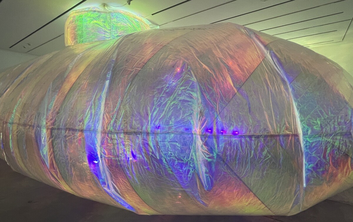 Synesthesia(シナスタジア)とは共感覚を意味し、今回のために特別に制作された直径12メートルのバルーン状彫刻が、展示室いっぱいに膨らんでいる。