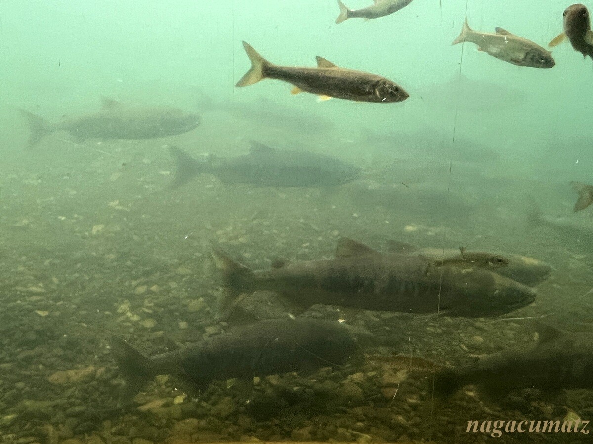 時期としては未だ少し早いのだが、実際に目の前に遡上して来たサケが泳いでいた。