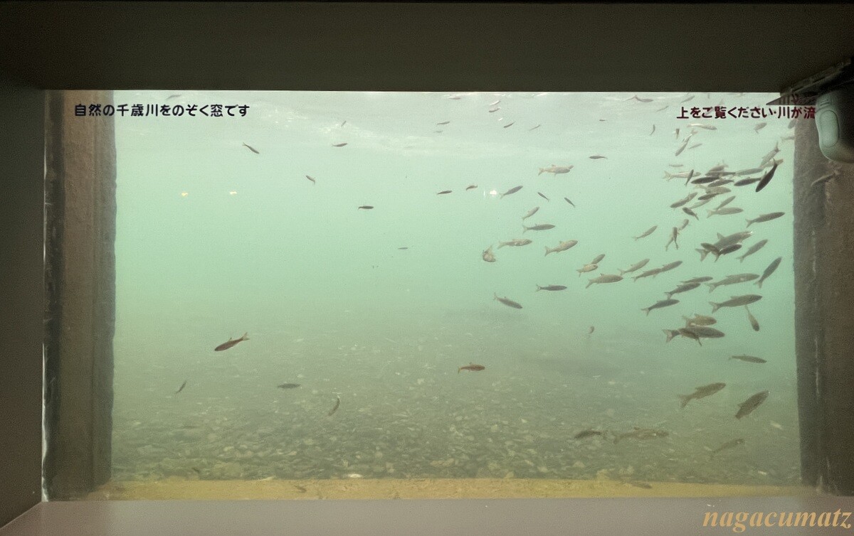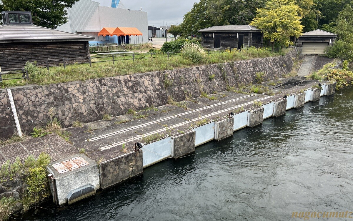 一番面白いのは、隣を流れている千歳川が真横から見られること。