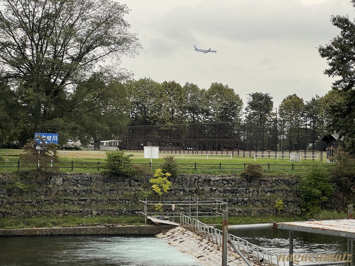 千歳川上空には、旅客機のみならず、自衛隊の戦闘機が飛んでおり、迫力満点。