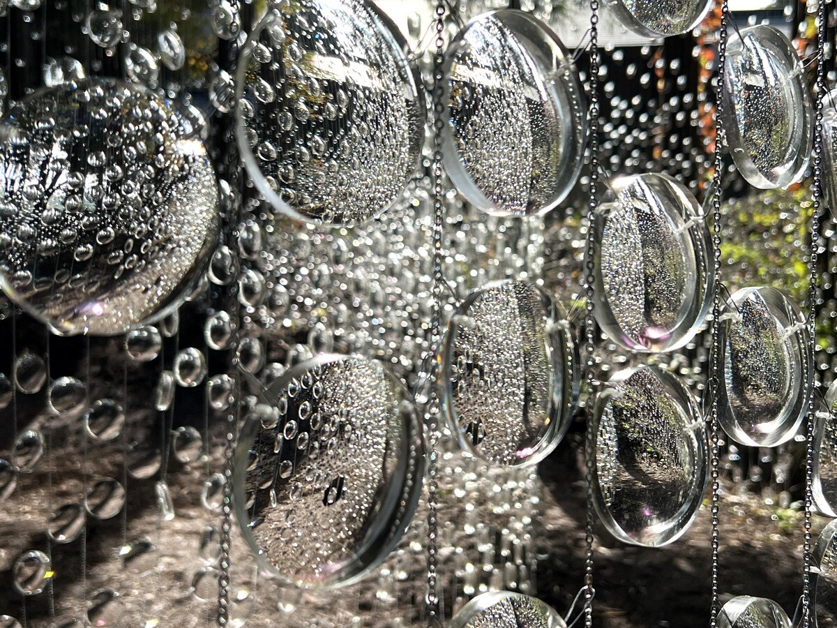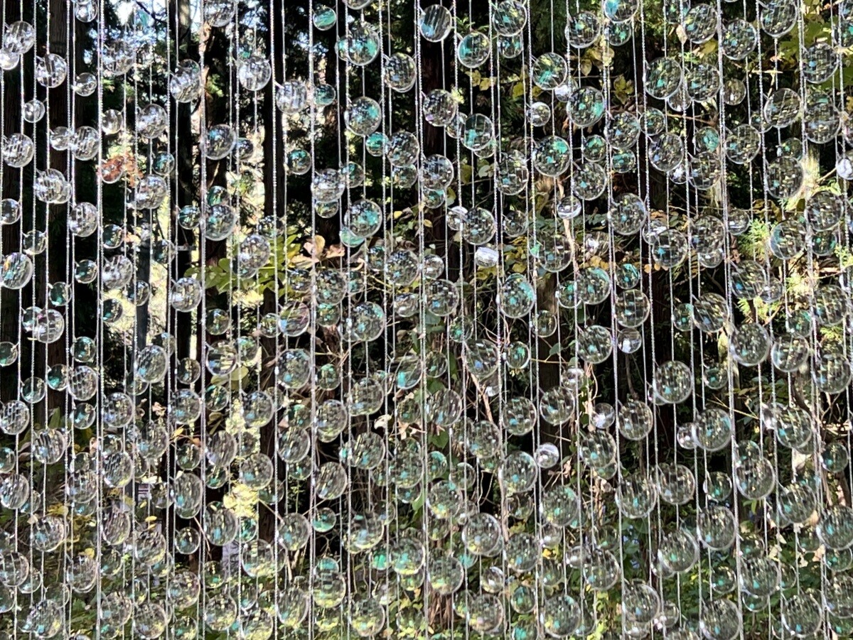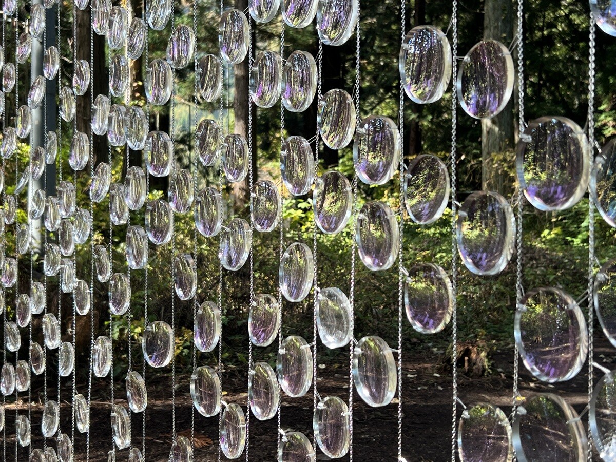 約2万個の眼鏡のレンズが吊り下げられている。ちょうど朝の太陽光が斜めから入って来ており、係の方が一番綺麗な時間帯だと仰っていたが、なるほど、とても綺麗。