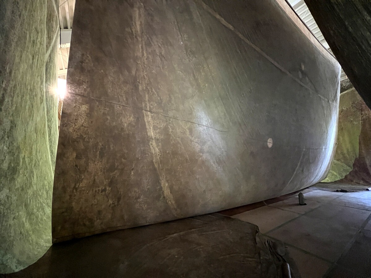 140ミリ角で高さ5メートルの27本の柱は、立っていたままの向きに立てられている。468枚の板は、厚さ21ミリ、幅140~160ミリ、長さ2メートル。689束の薪は、長さ40センチ、直径21センチのタガに詰められている。