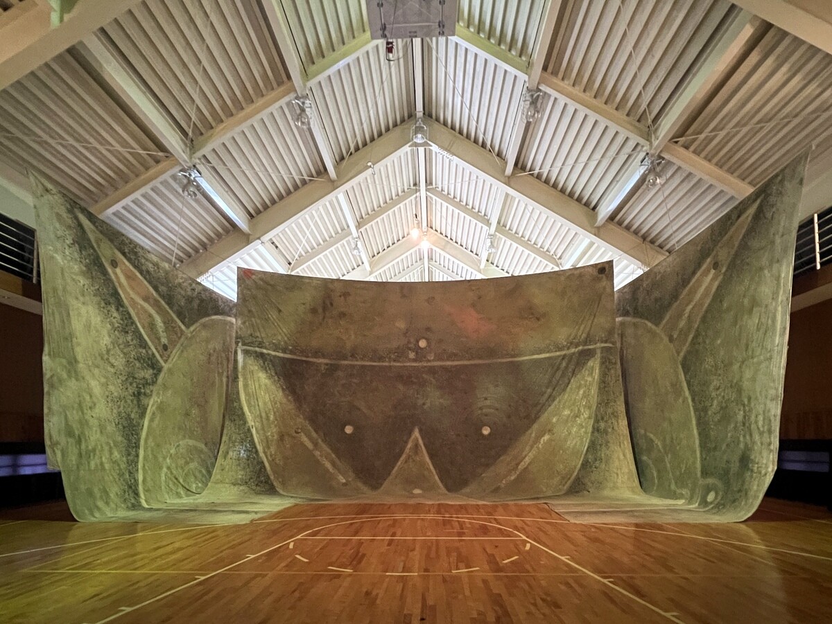 初回となる2017年の芸術祭で発表され、2021年に再制作された作品。全長20メートル、高さ6メートルの壁画は、大町で集めた13種類の土で描かれているとのこと。