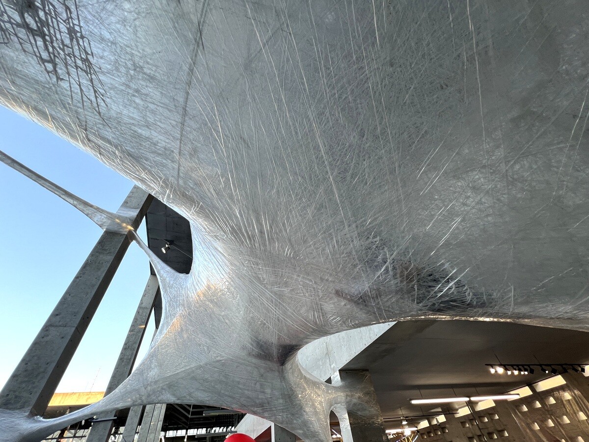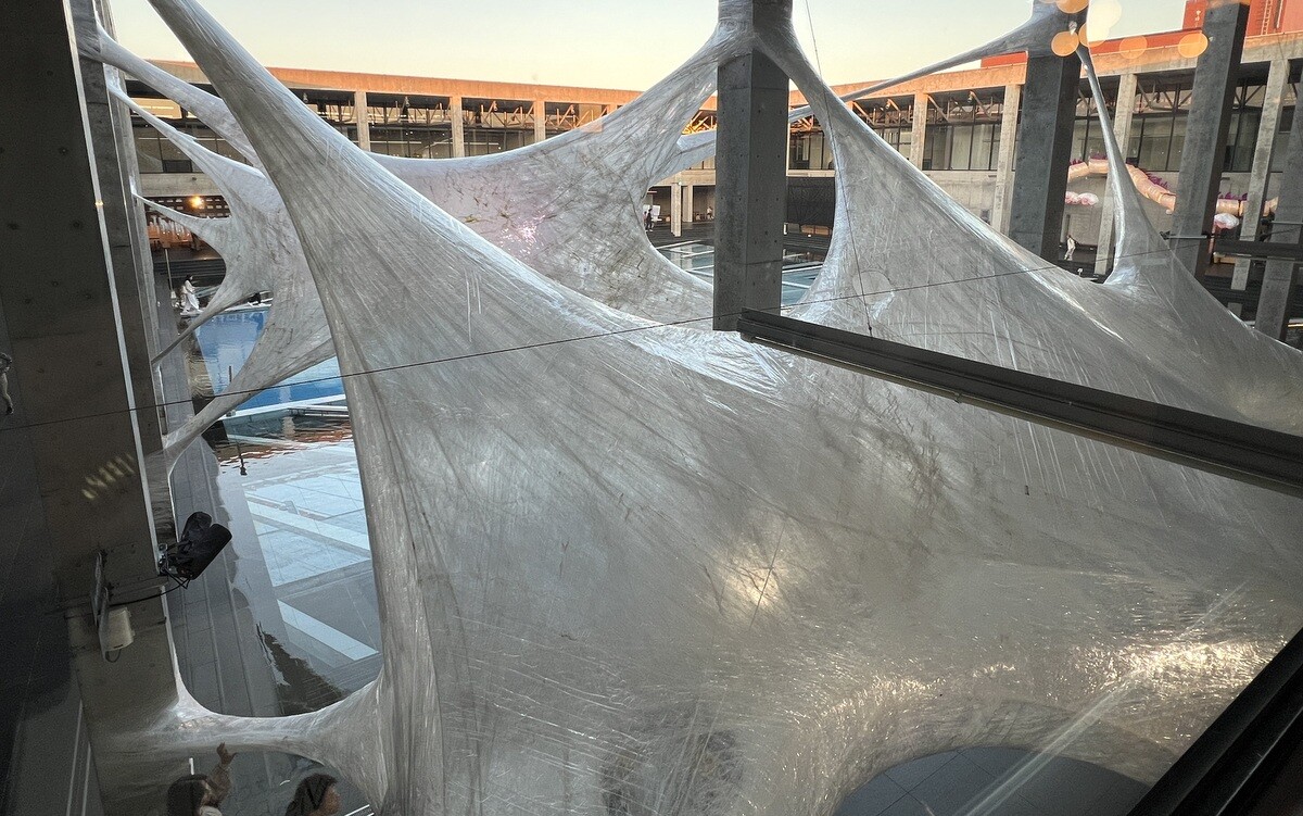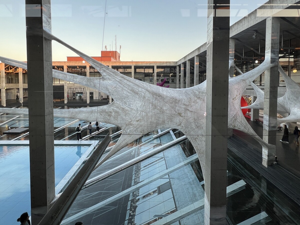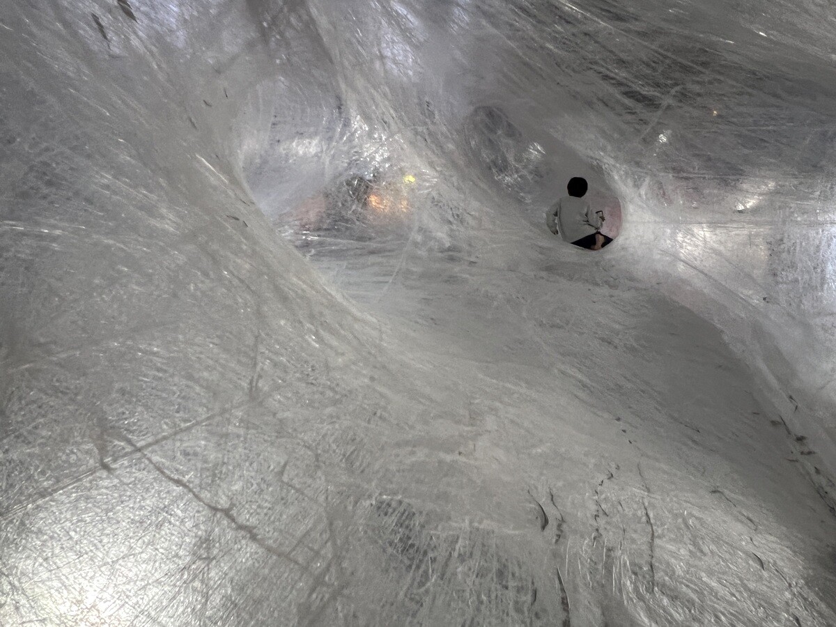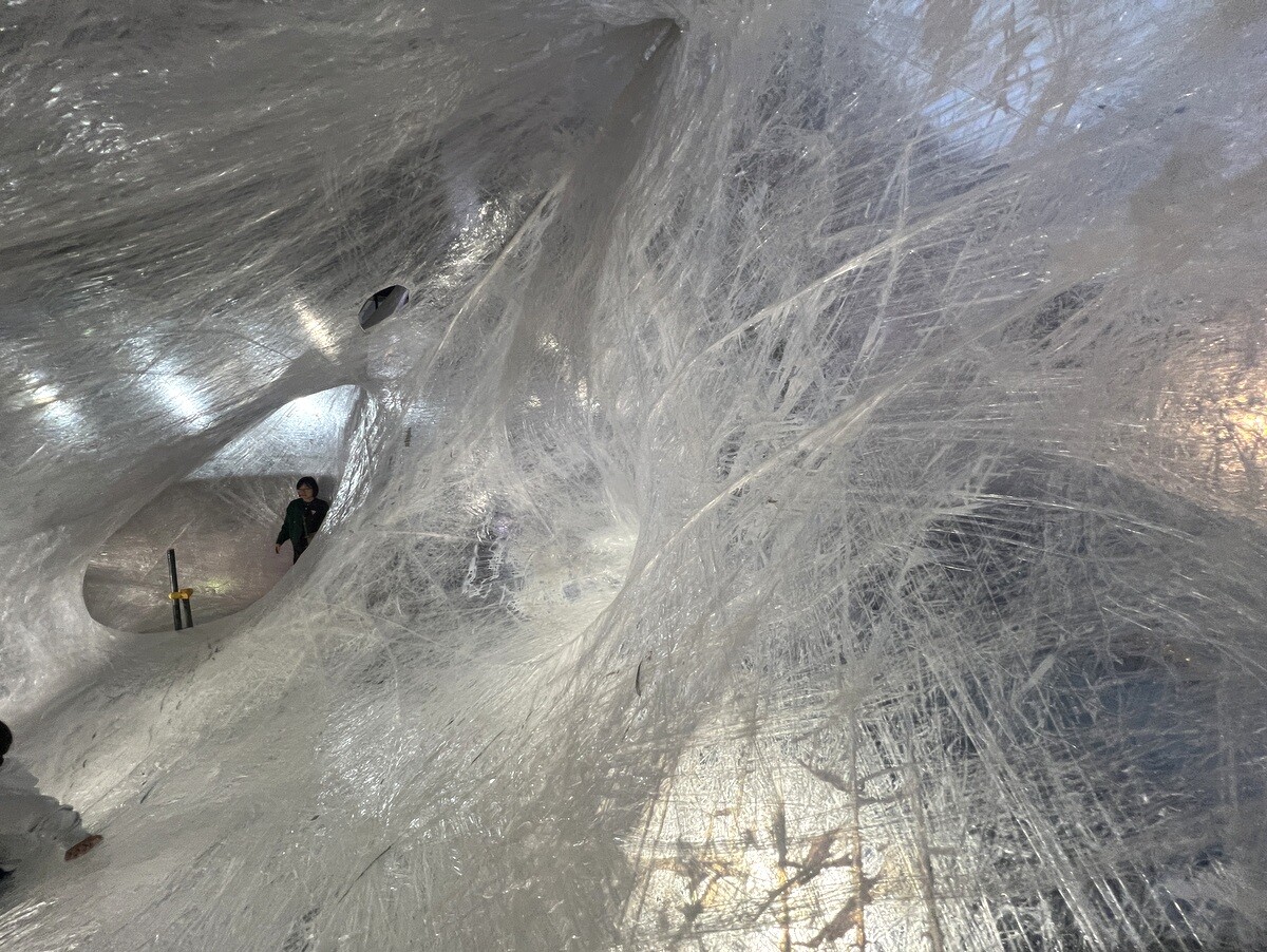 クロアチアとオーストリアのアーティストユニットであるヌーメンによる。作品を形づくる伸縮性のある包装用のテープは腱のように引き伸ばされていて、作品の中に入ることが出来たのだが、靴は脱ぐが靴下を履いていたら滑ってしまった💦