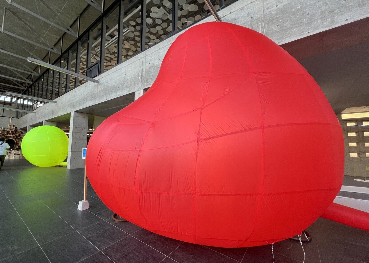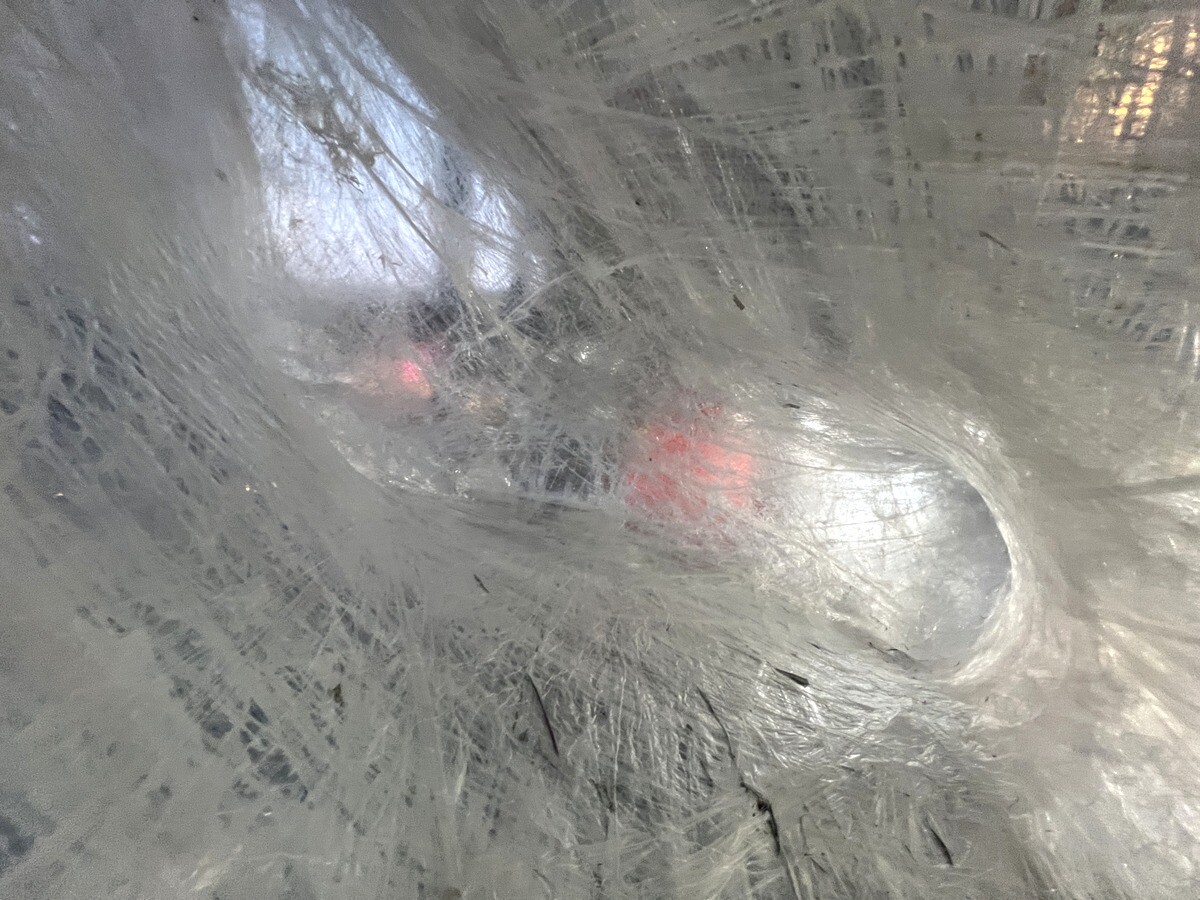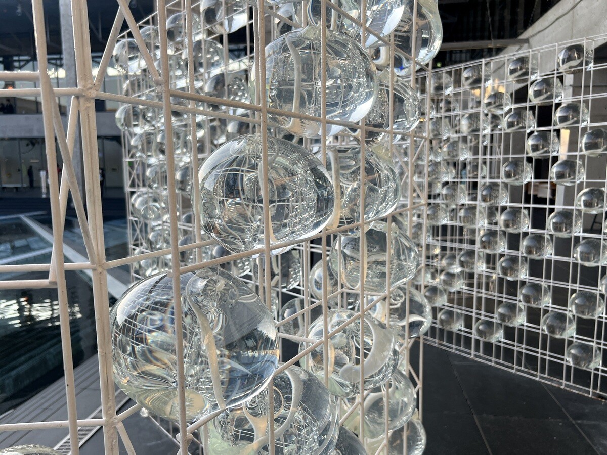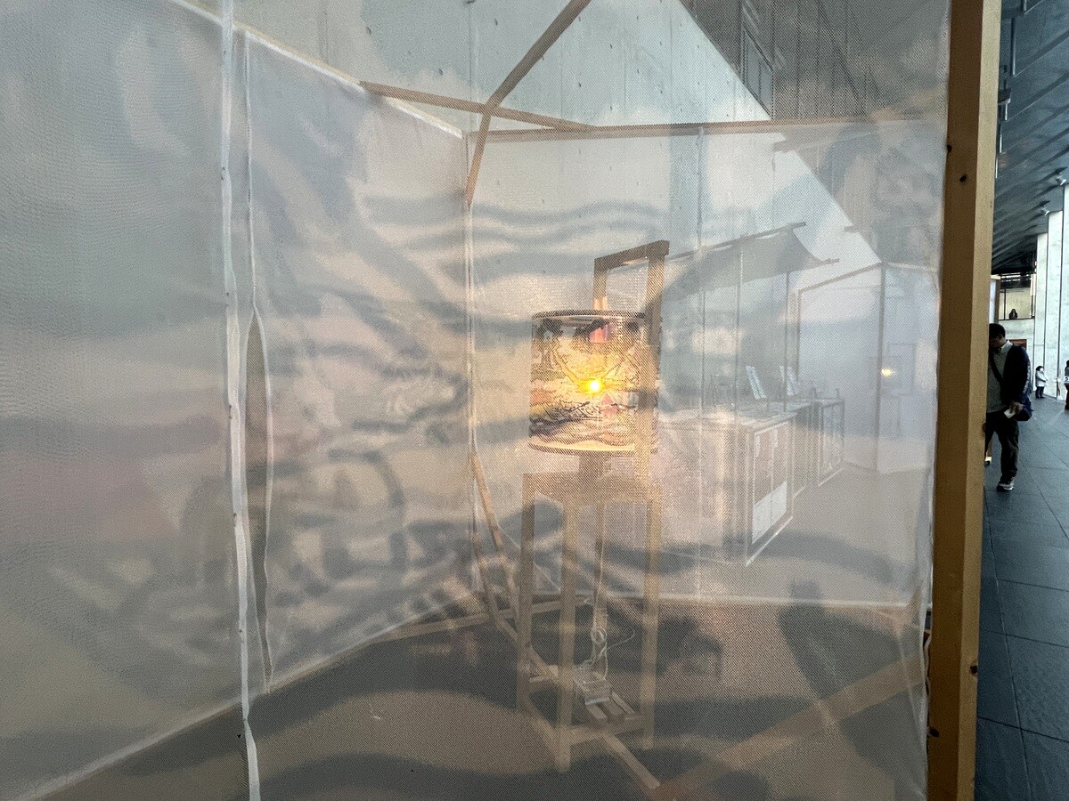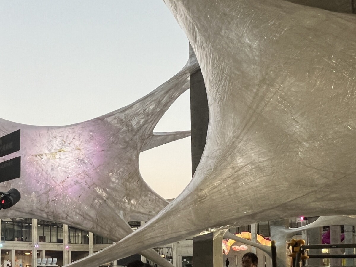 クロアチアとオーストリアのアーティストユニットであるヌーメンによる。作品を形づくる伸縮性のある包装用のテープは腱のように引き伸ばされていて、作品の中に入ることが出来たのだが、靴は脱ぐが靴下を履いていたら滑ってしまった💦