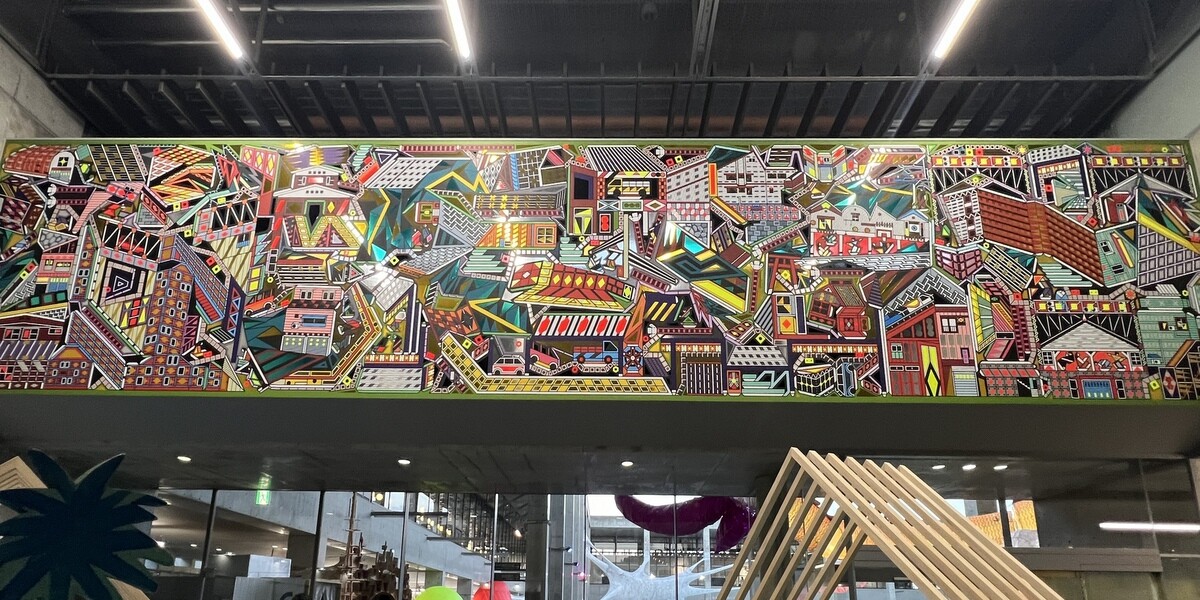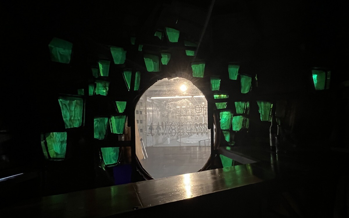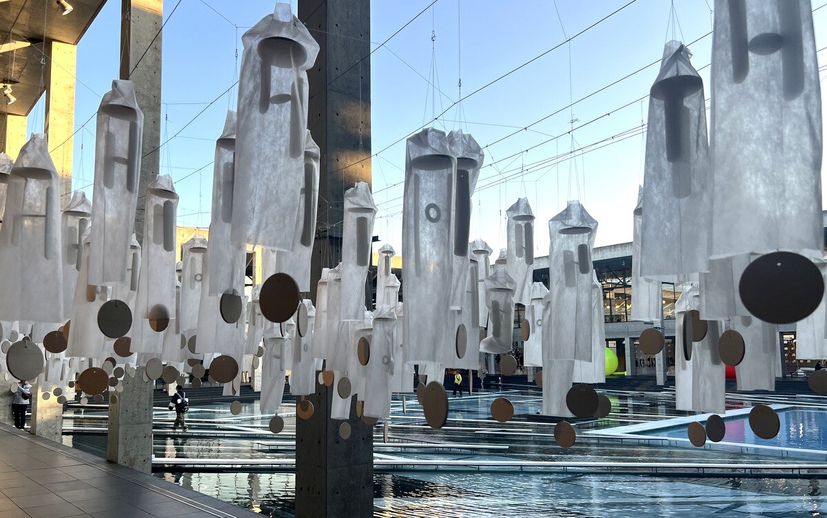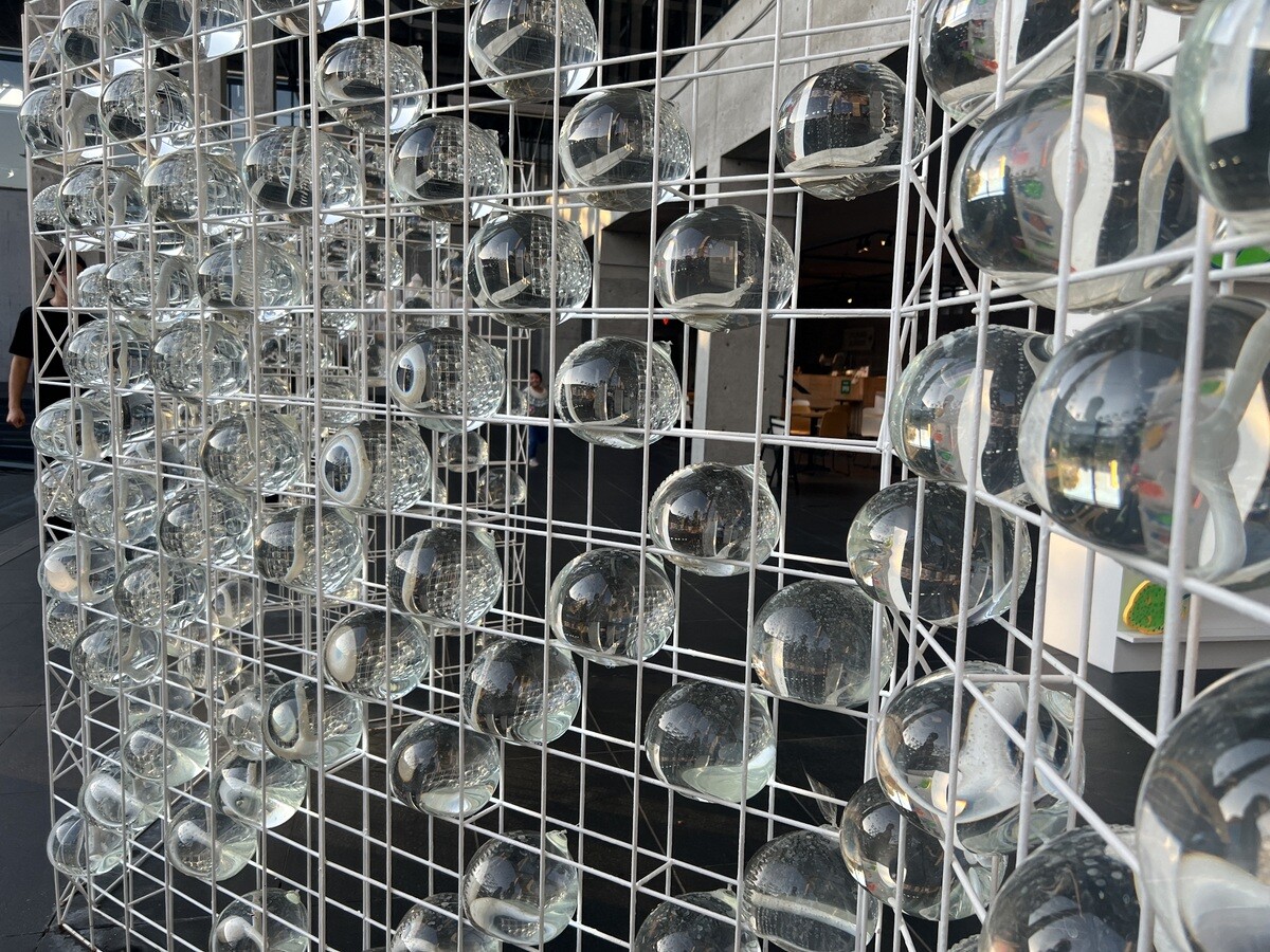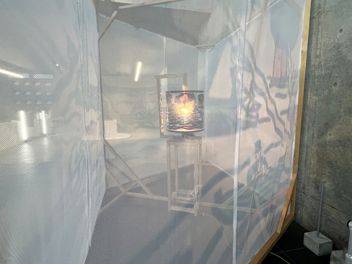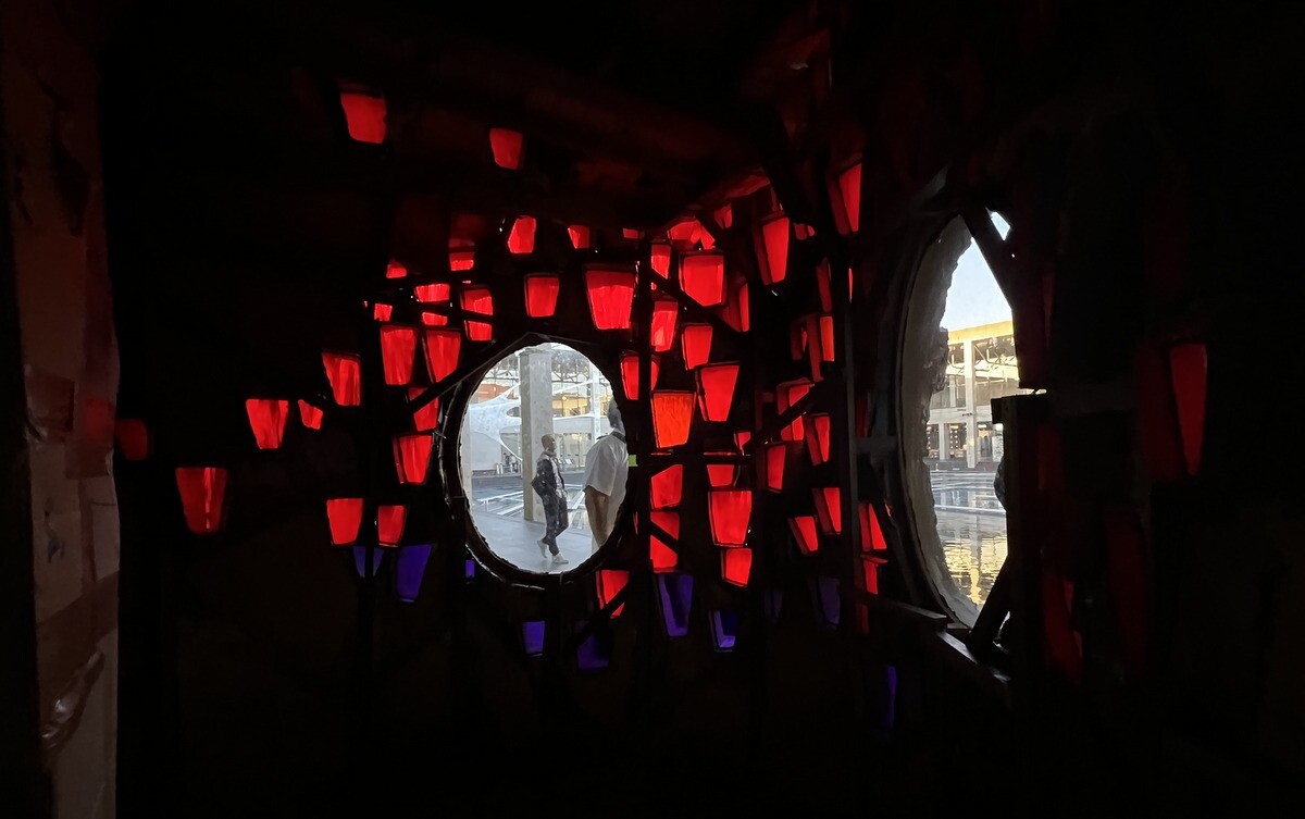 クロアチアとオーストリアのアーティストユニットであるヌーメンによる。作品を形づくる伸縮性のある包装用のテープは腱のように引き伸ばされていて、作品の中に入ることが出来たのだが、靴は脱ぐが靴下を履いていたら滑ってしまった💦