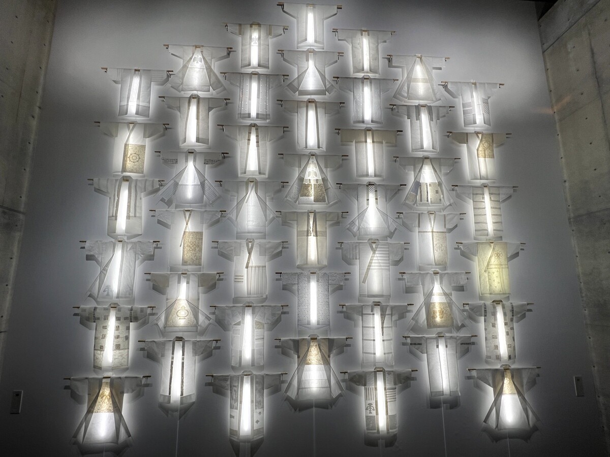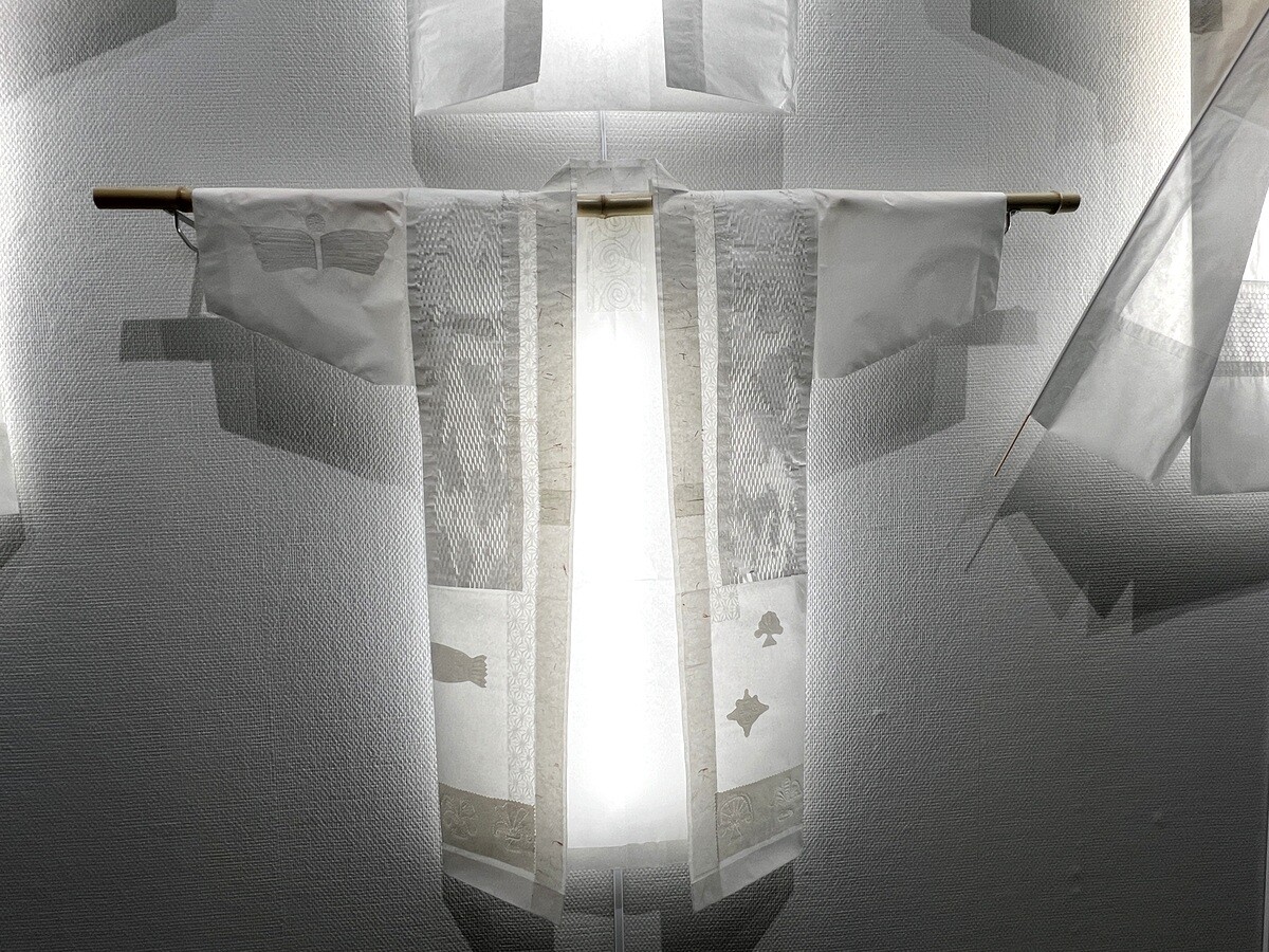 妻有の住民の協力で集めた野良着を題材に、和紙で制作しているとのこと。