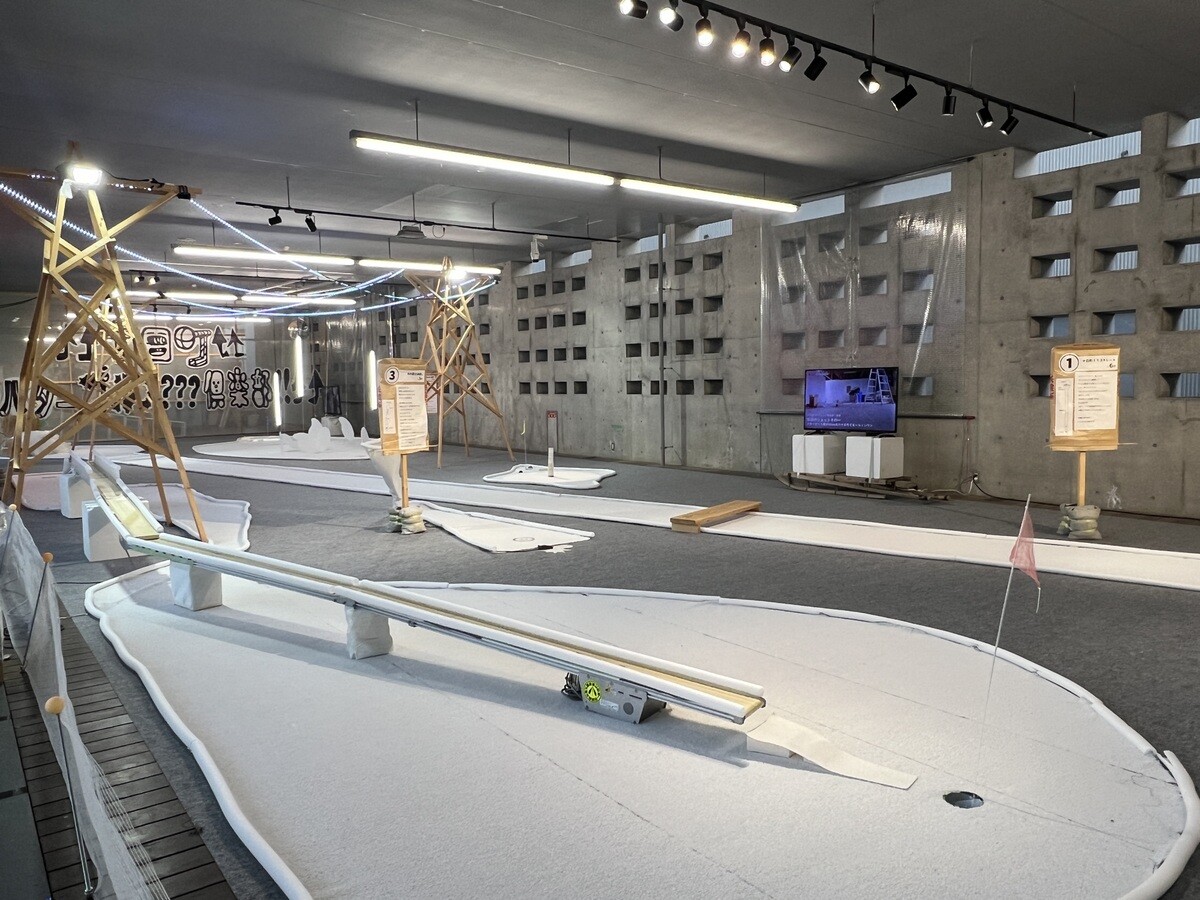 パフォーマンスユニットの contact Gonzo と、建築家ユニットの dot architects によるパターゴルフ場。