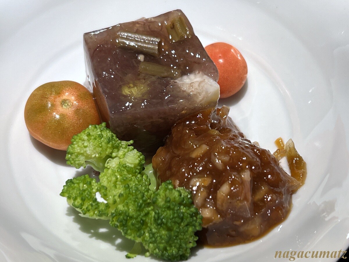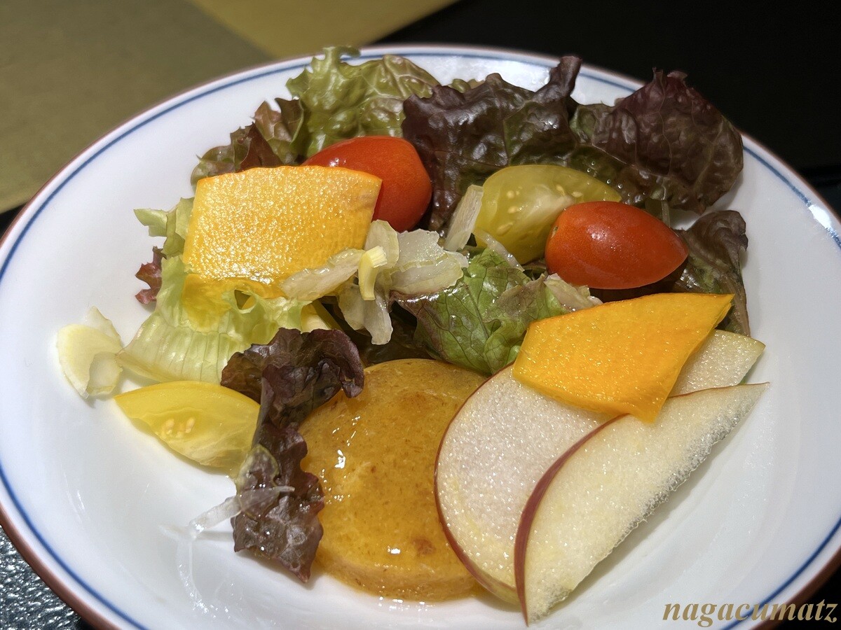 柿のジュレさらだ 手前の柿のジュレがドレッシング代わりとなっている。