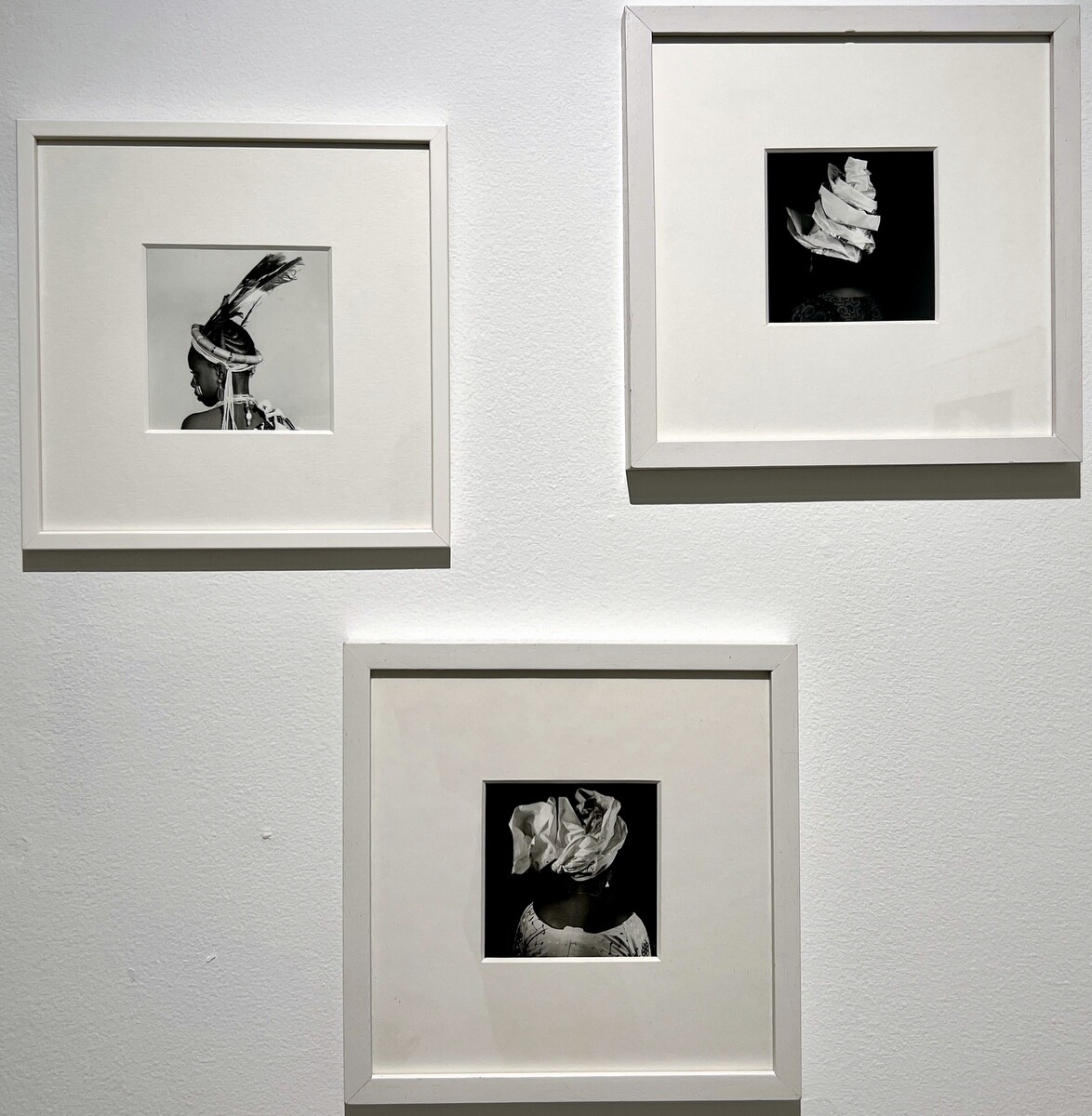 「ヘッドドレス」シリーズは、2000年代初頭にオジェイケレ氏が手掛けたシリーズで、ナイジェリアのさまざまな女性たちのヘッドドレスをテーマに、布を手作業でアレンジしている。