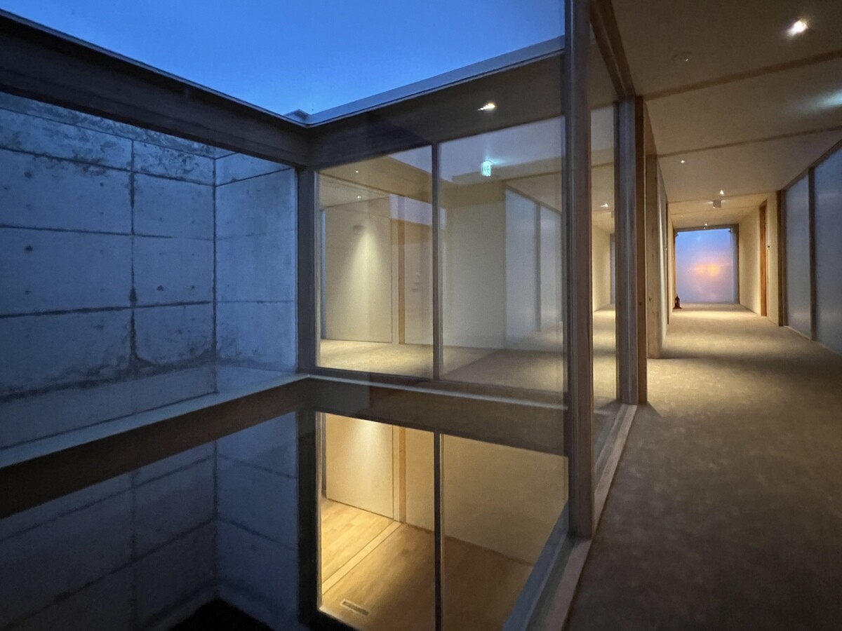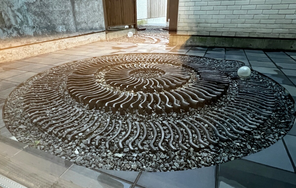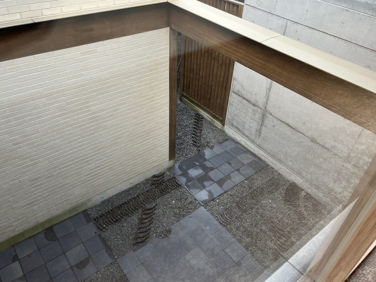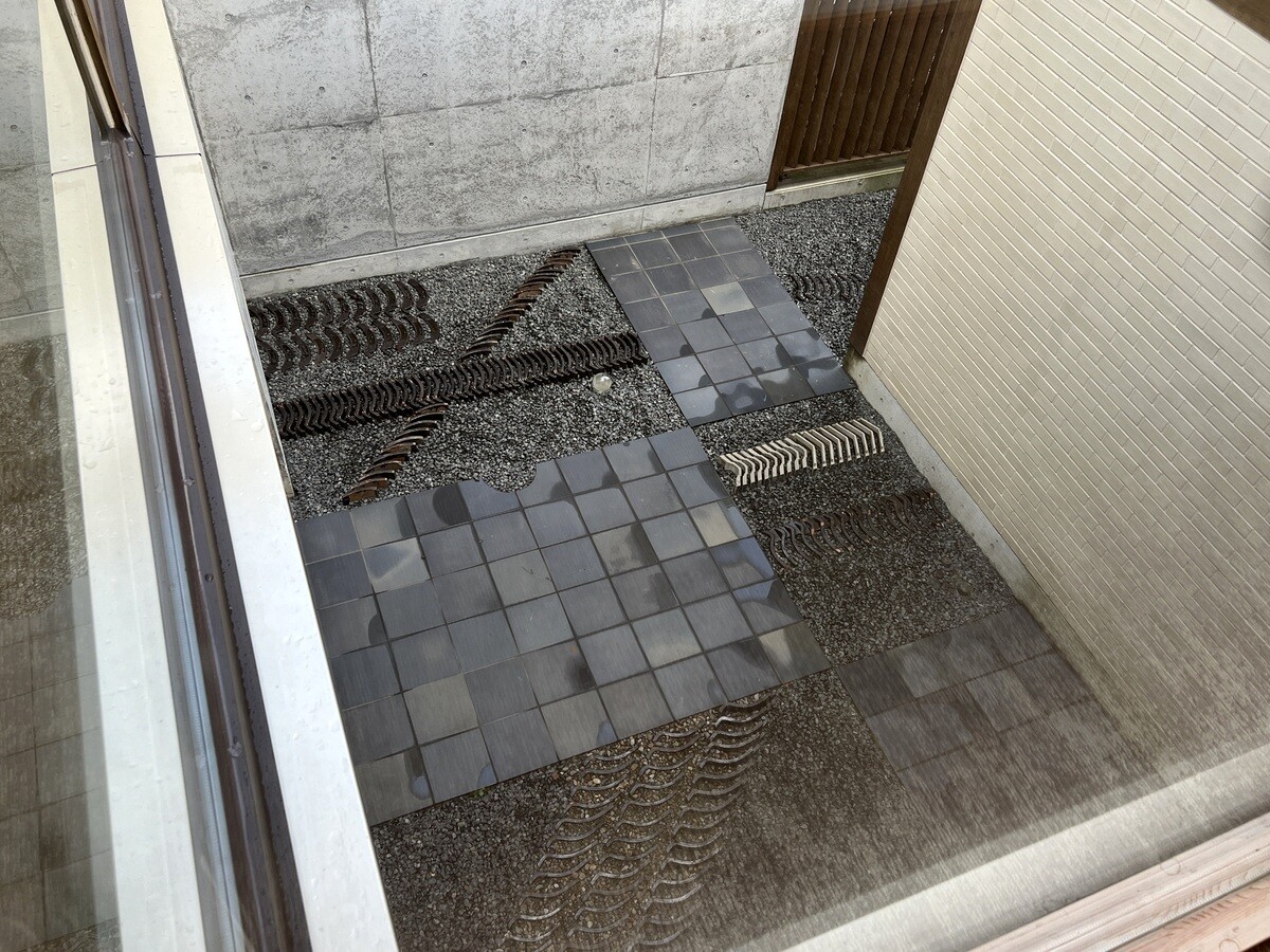 中庭の瓦は、2016年の熊本地震で倒壊した家屋の瓦を譲り受けて意匠にしており、中庭ごとに異なるデザインとなっている。