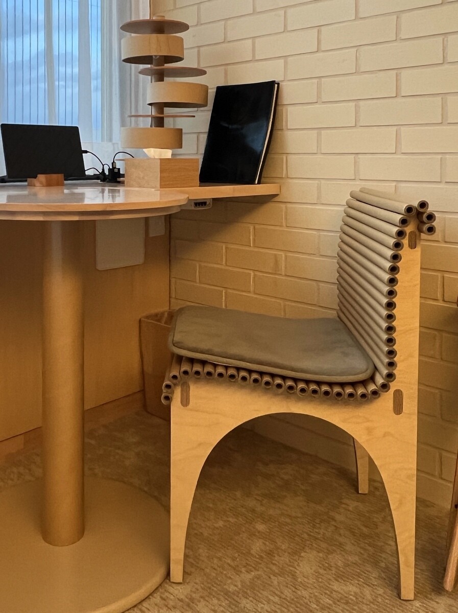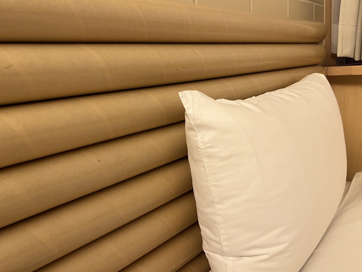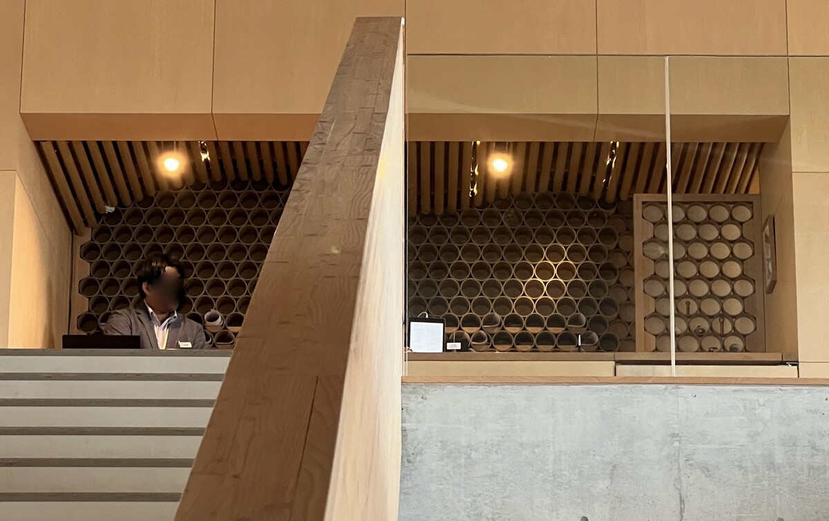 フロントのキーボックスは、坂茂氏の代名詞ともなっている紙管。