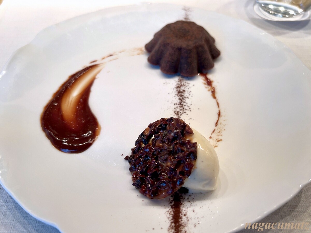 デザートは、チョコレートフォンダンか1000円増の栗からの選択で、チョコレートフォンダンを。手前はマダガスカル産バニラを使ったアイスクリーム。