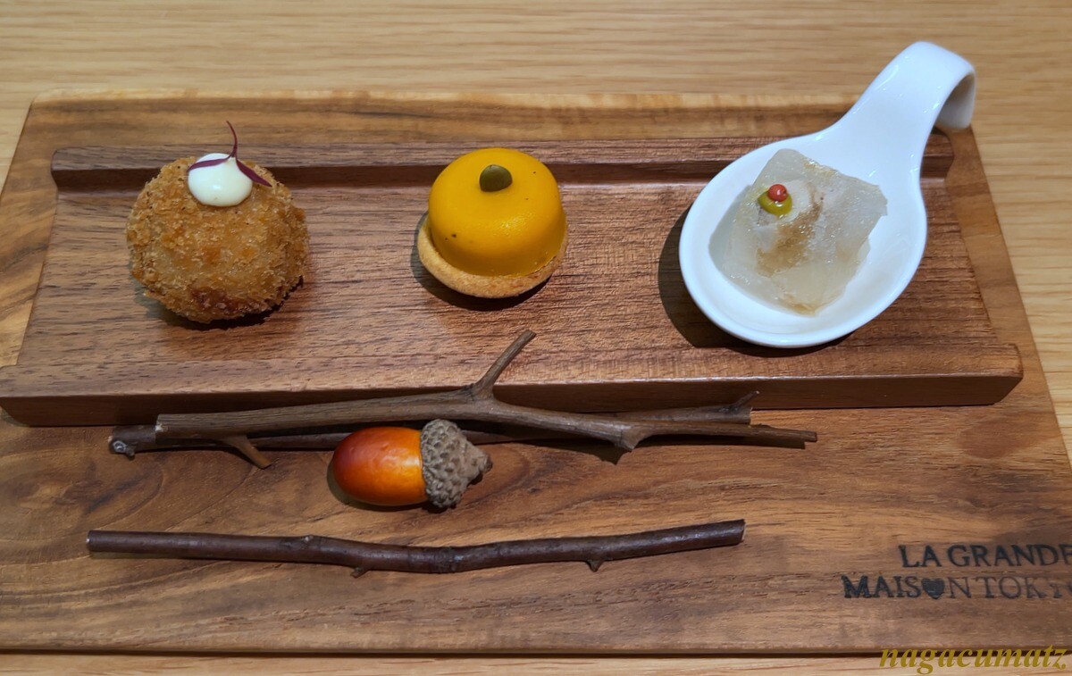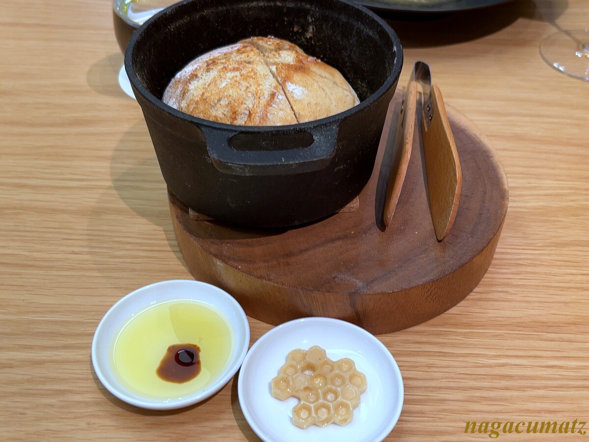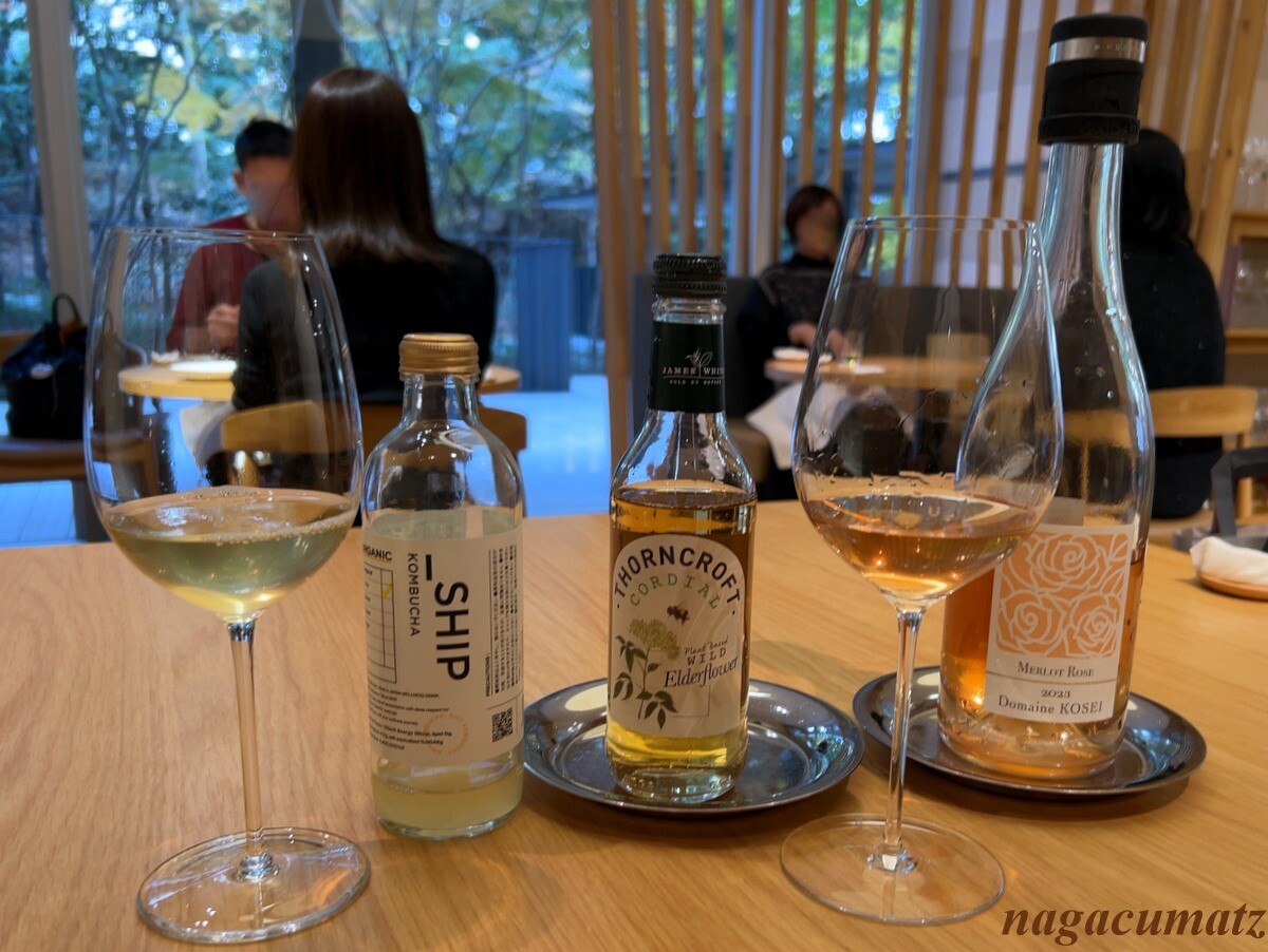 お肉には、アルコールは2種類の赤ワイン。脂身多めの部分はこちら、少なめにはこちら、と言う飲み方などを説明してくださった。ノンアルは、魚バージョンのもののお肉バージョンで、ダージリンにジュニパーベリー、カカオ、ハイビスカスが入っており、葡萄ジュースで割っている。