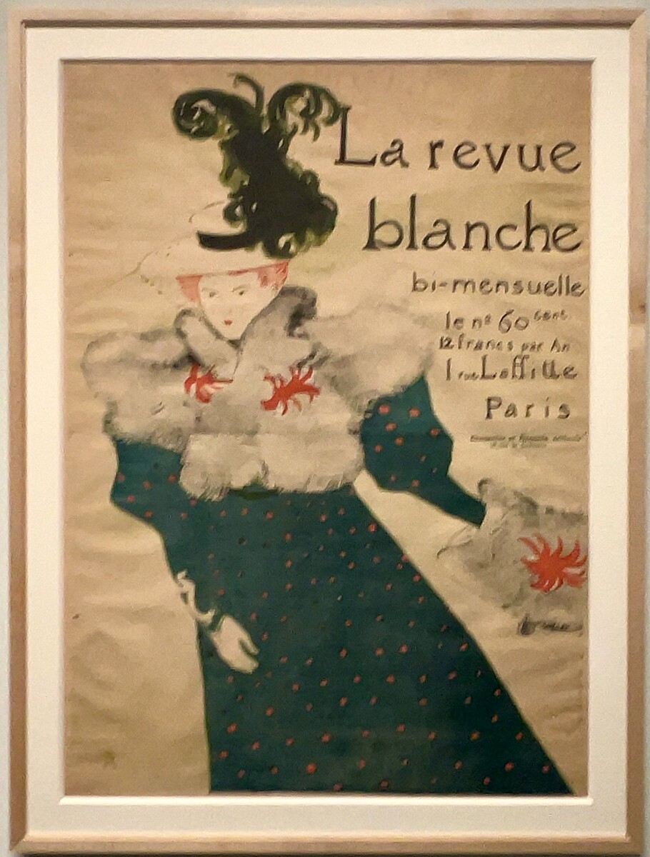 19世紀を代表するポスターのひとつ。思った以上に大きなポスターだった。27歳で制作し、一躍有名になる。体の柔らかさで有名となったヴァランタンと言う男性は顔を描かずにシルエットで手前に配し、女性は足をあげて踊ることで有名なラ・グーリュを中央に。