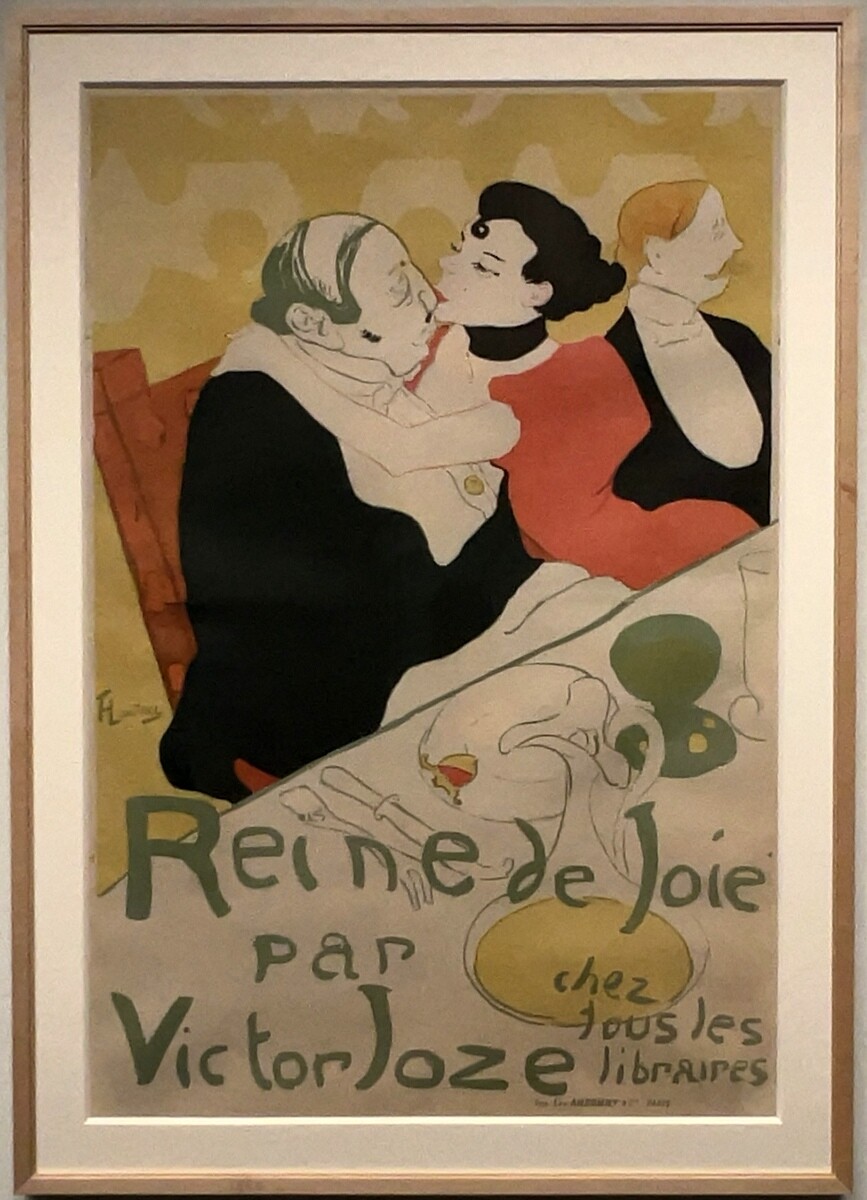 「『悦楽の女王』」1892 同じくヴィクトル・ジョズの連作小説「社交動物園」のうちの「悦楽の女王/高級売春婦の生態」のポスター。ロスチャイルド男爵は、ユダヤ人銀行家のローゼンフェルトは自分を描いたものとして出版差し止めを求めたが認められず。