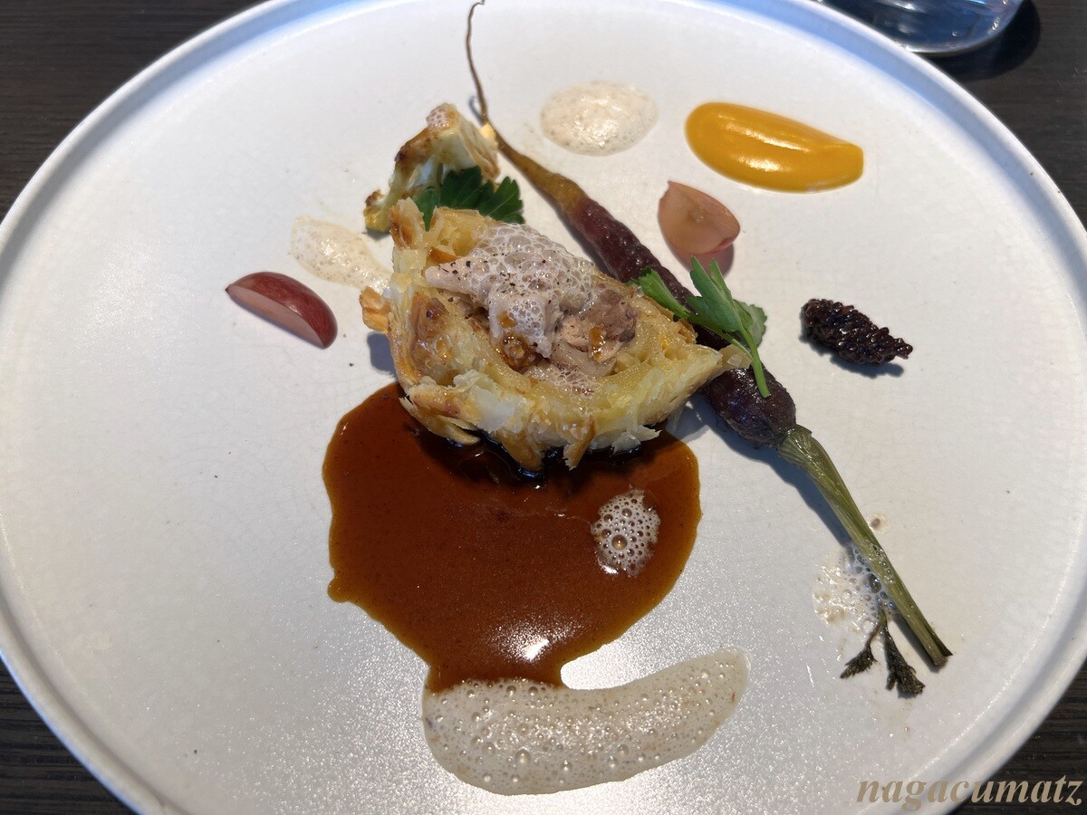 本日のお肉料理 鹿や鴨などのパイ包み 右側のものは赤ワインマスタードシード