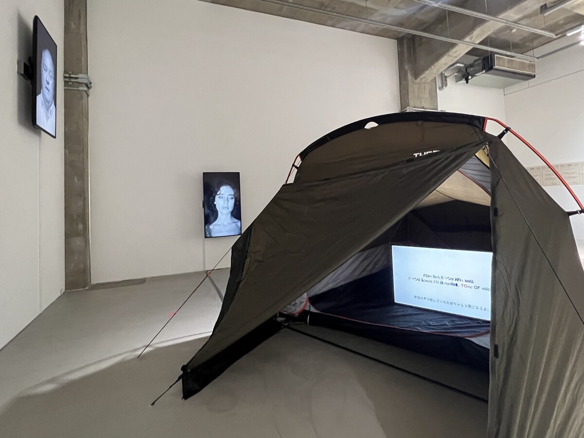 グラフィックデザイナーの見増勇介氏と外山央氏、プログラマーの真下武久氏で構成されるインテクストによる 「Voice Transaction | 声の取引」展。