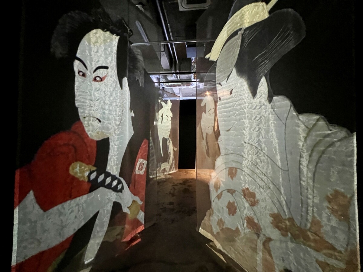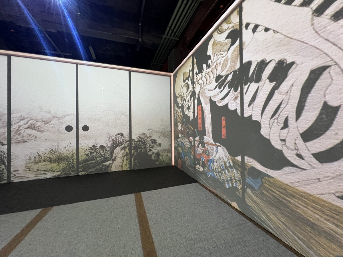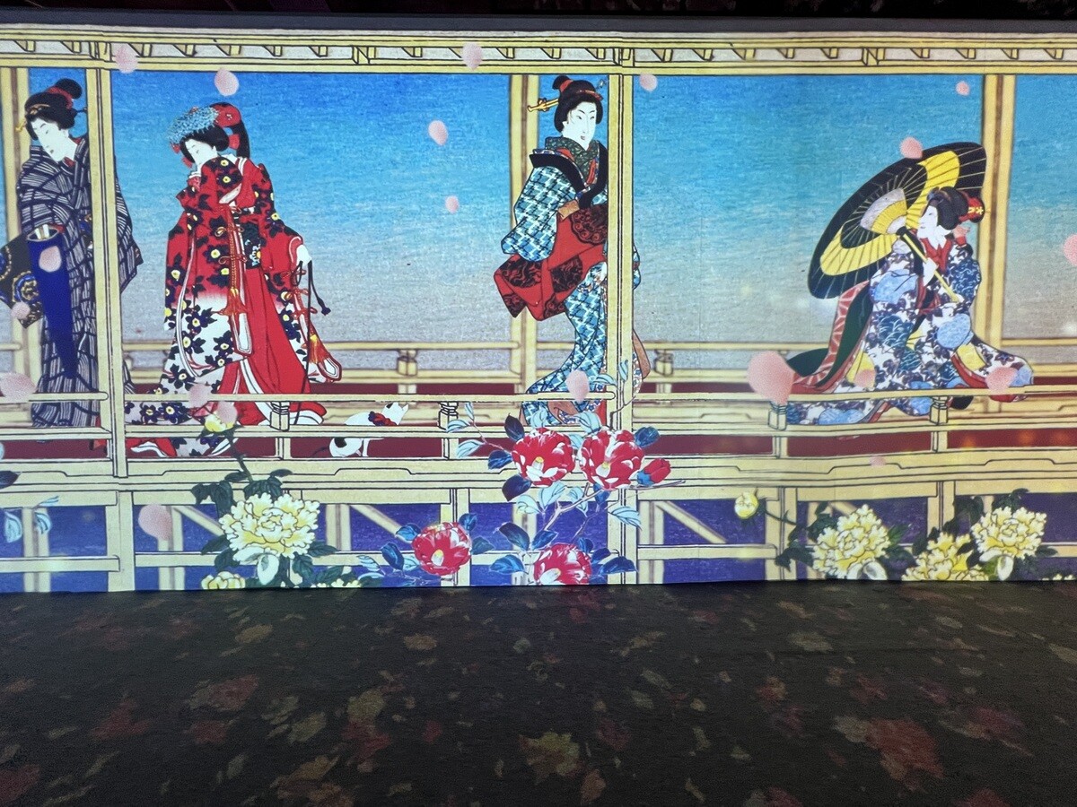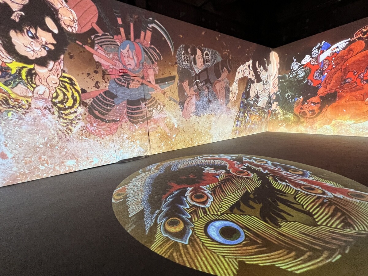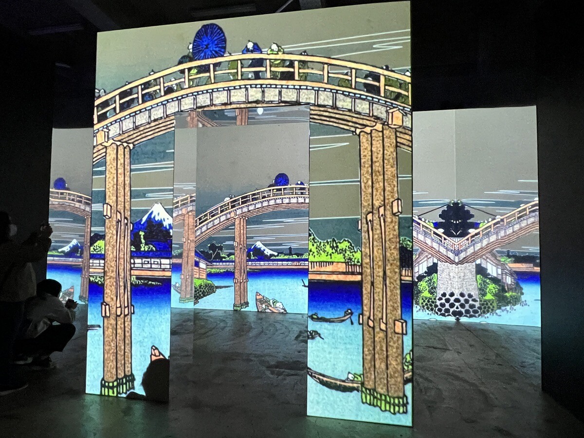 浮世絵を大きく拡大しているから仕方がないのか、チームラボを見慣れてしまっているせいか、解像度が悪いので、雑に見えてしまう・・・