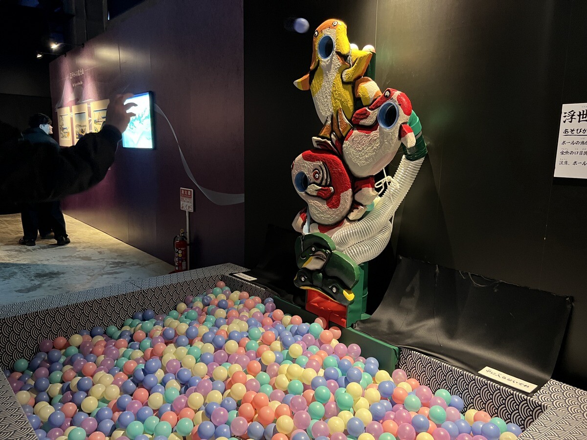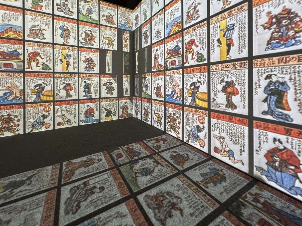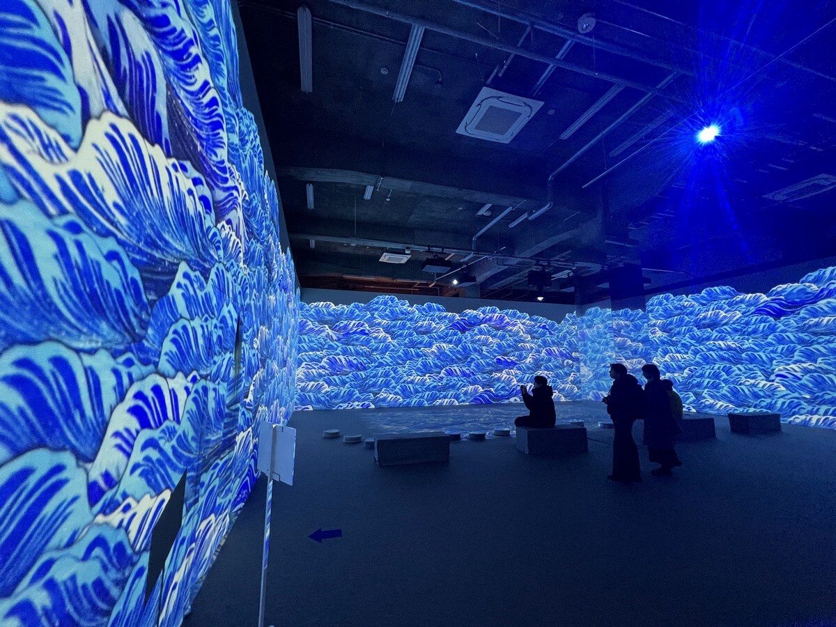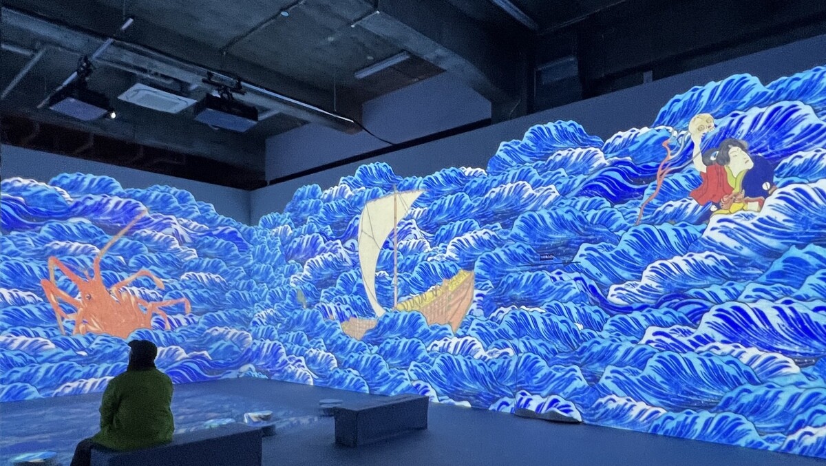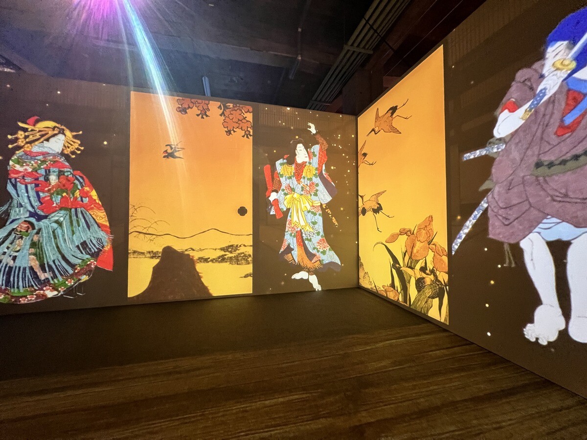 浮世絵を大きく拡大しているから仕方がないのか、チームラボを見慣れてしまっているせいか、解像度が悪いので、雑に見えてしまう・・・