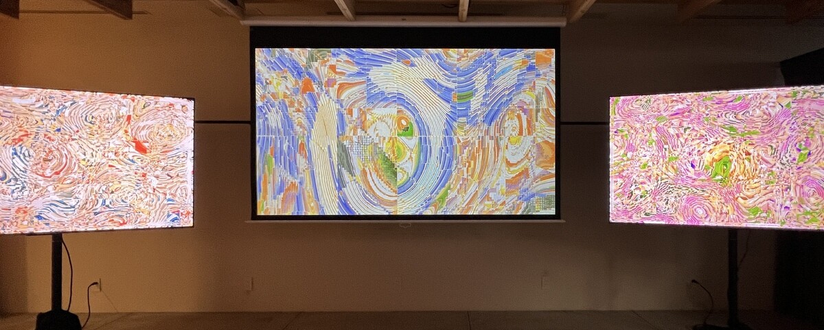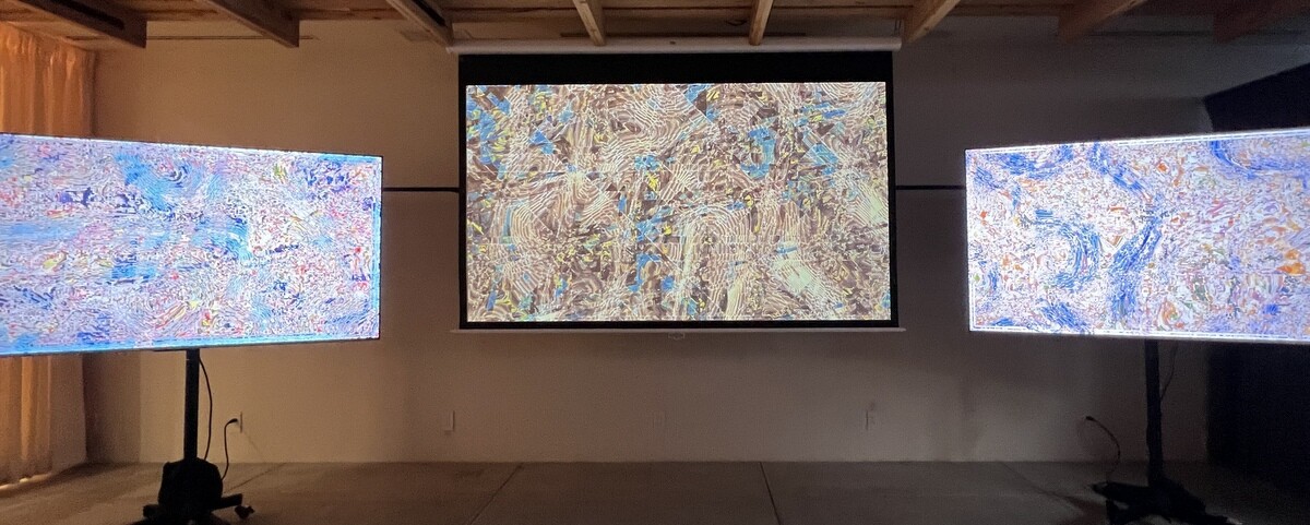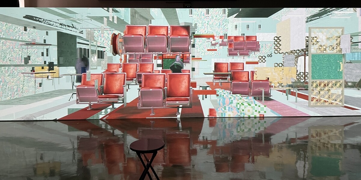 カナダのモントリオールのクリエイティブスタジオによる言葉や音や光の波やパルスに変換するインタラクティブインスタレーション。手前で声を出すと、少しの間が置きがら、その声のエコーが順番に聞こえていく。