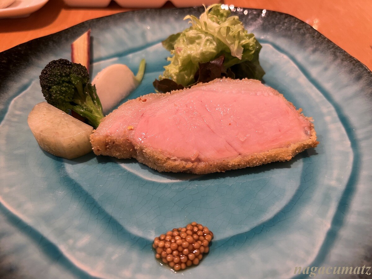 栃木県産の「あさの豚」 タスマニアの粒マスタードが付く。