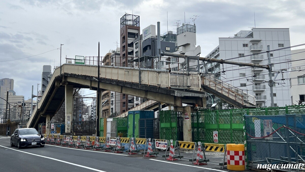 渋谷と恵比寿の間にある山手線や埼京線などを越える歩道橋で、以前から錆なども目立って老朽化していたので、渡る時はちょっと怖いなと思いつつ使っていたのだが、ふと見ると、両側のそれぞれ片方の階段が途中まででカットされている。