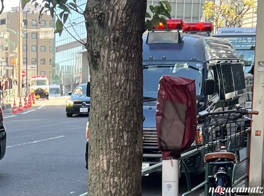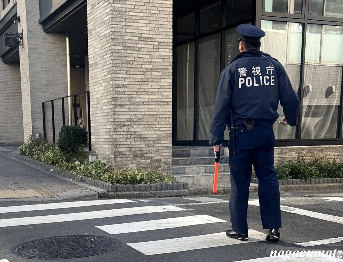 目黒の権之助坂を歩いていると、いつになく警官だらけ。両側に警察車両が停まっていたり、背広姿に「警視庁」と書かれた腕章をした警官の方々も。なんでも、皇族の方が通るとのことで、警戒されていたようだが、、、