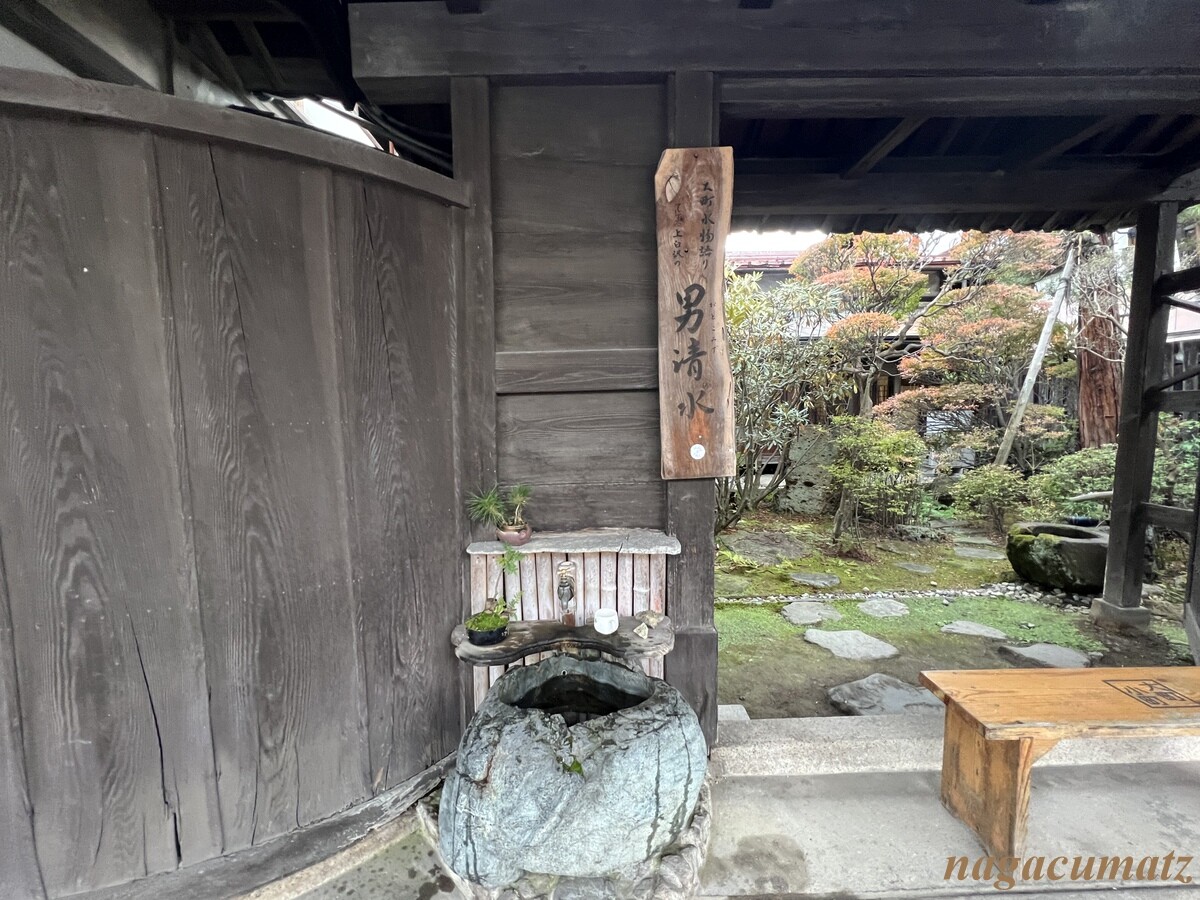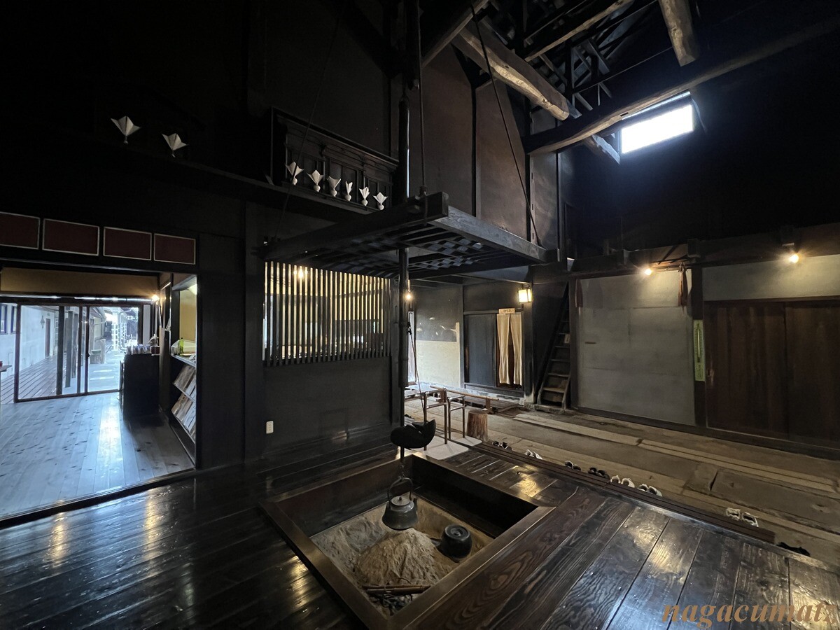 松本と糸魚川を結ぶ塩の道である「千国街道(ちくに)」の要衝として栄えた大町の八日町に位置している。松本藩は、軍事上や税金の徴収の為に甲州街道や三州街道(伊那方面)や中山道から運ばれる「南塩」を禁止し、塩は糸魚川から運ばれて来る「北塩」としていた。当時は「糸魚川街道」「松本街道」と呼ばれていたとのこと。