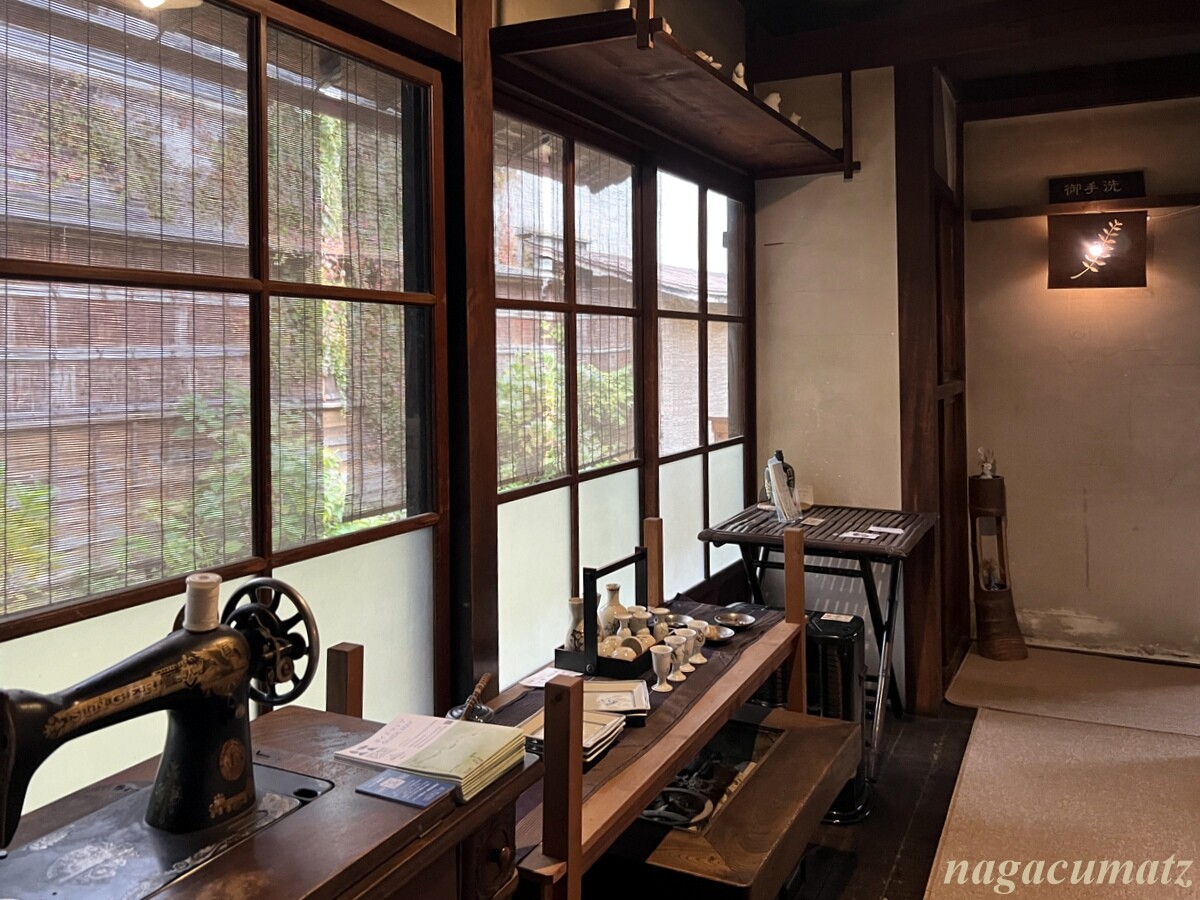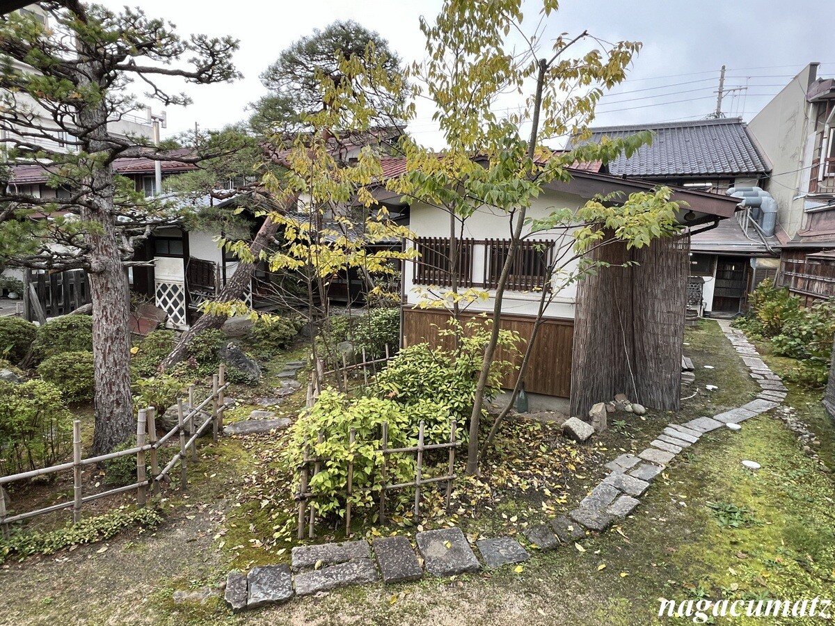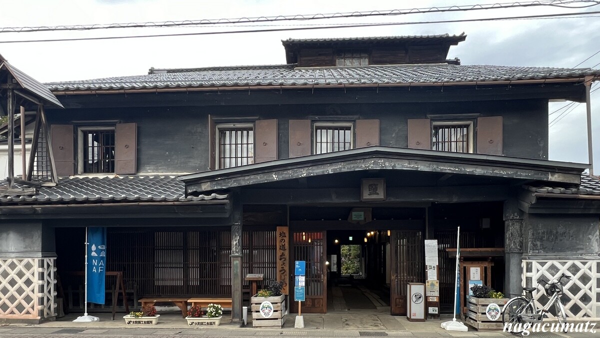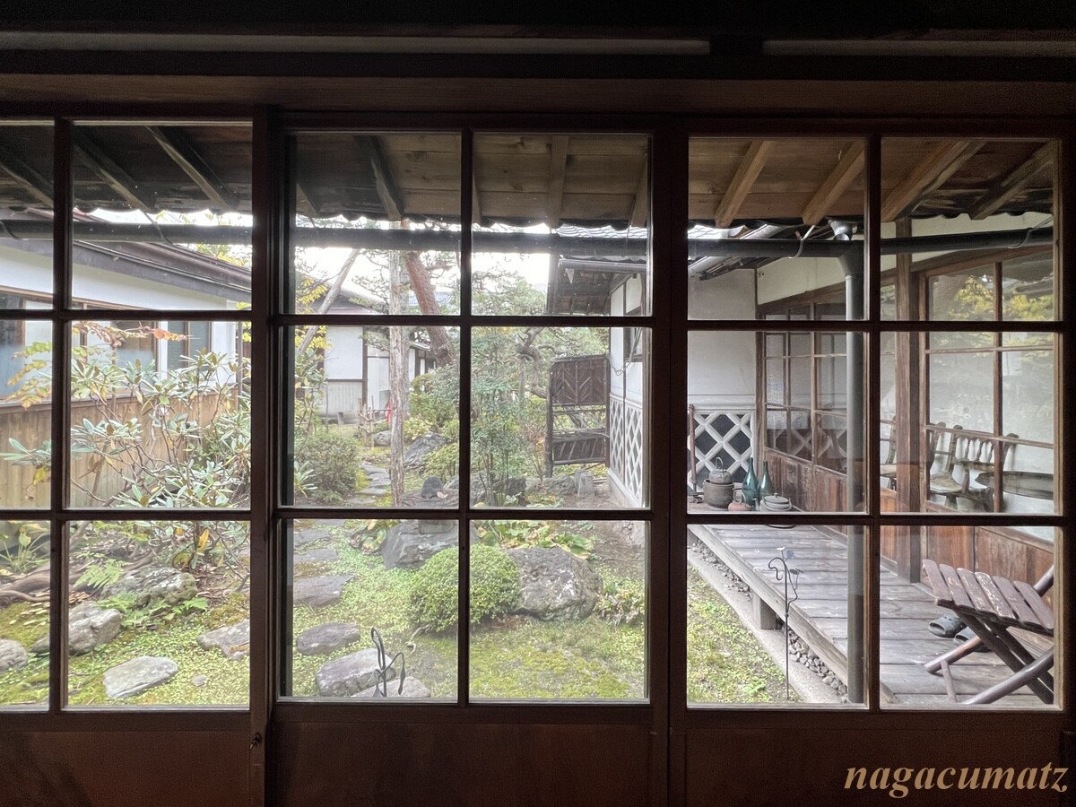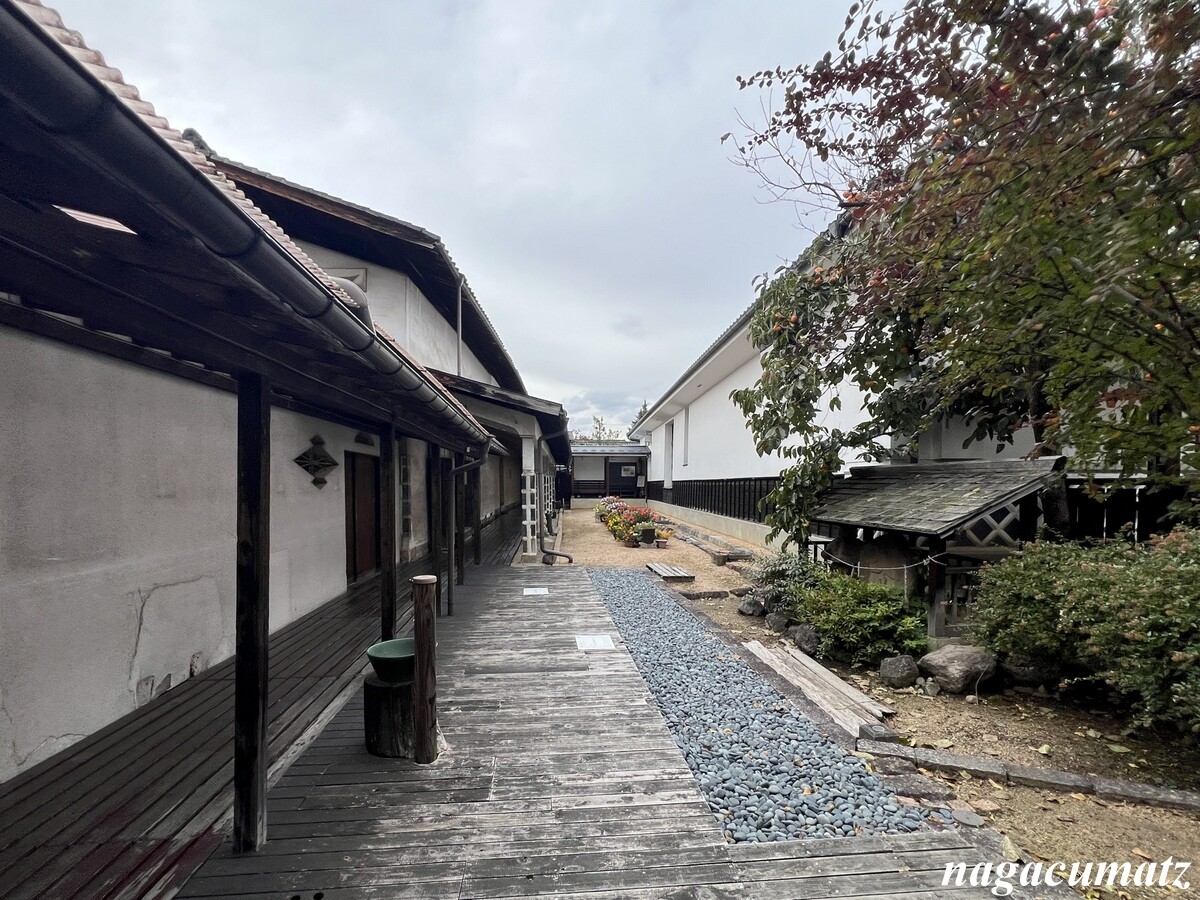 栗林家 江戸時代に大町組大庄屋で、店舗、主屋、門、塀は、国の登録有形文化財。そこの「わちがい」でランチをさせてもらった。その様子は こちら