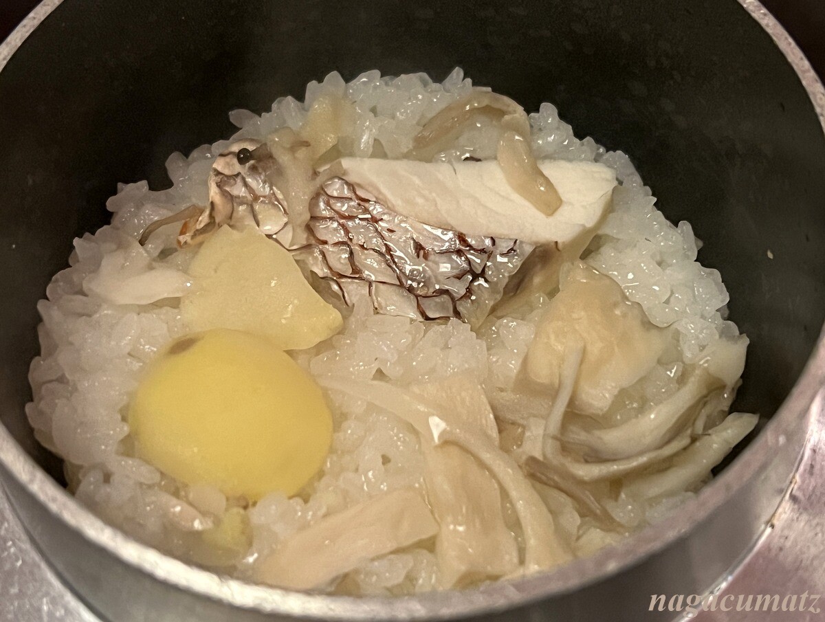 鯛釜飯と味噌汁と香の物